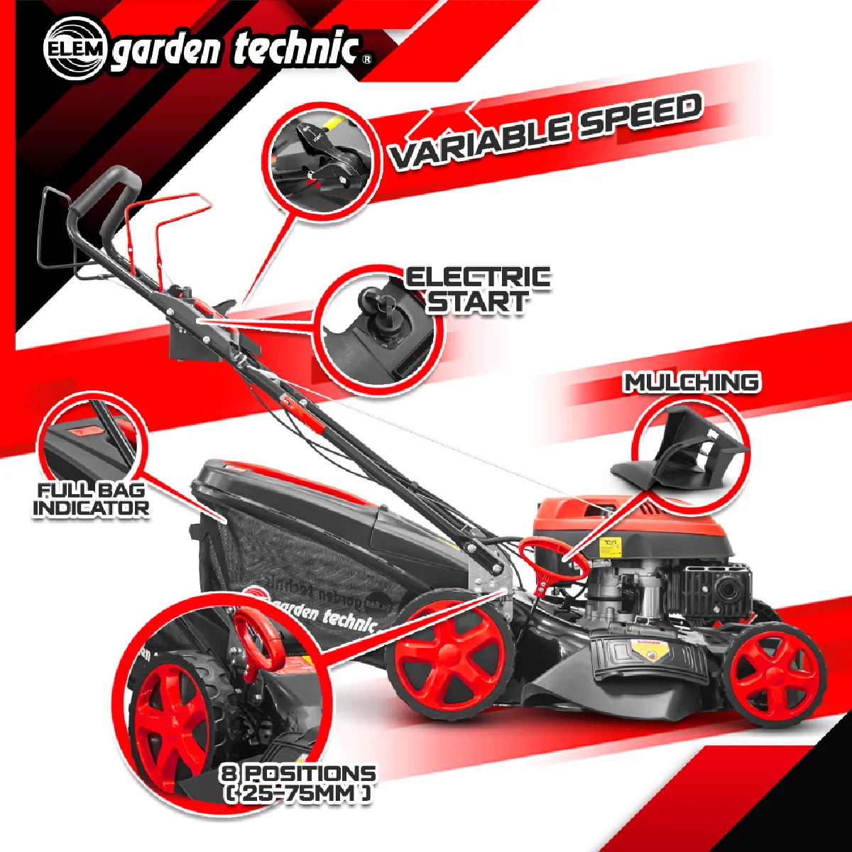 Avec un carter en acier, cette tondeuse Elem Garden Technic résiste à des conditions compliquées et bénéficie d'une longue durée de vie. Elle dispose d'un démarrage électrique qui assure un démarrage facile et sans effort. Elle possède de grandes roues afin de vous offrir une meilleure maniabilité de la machine.