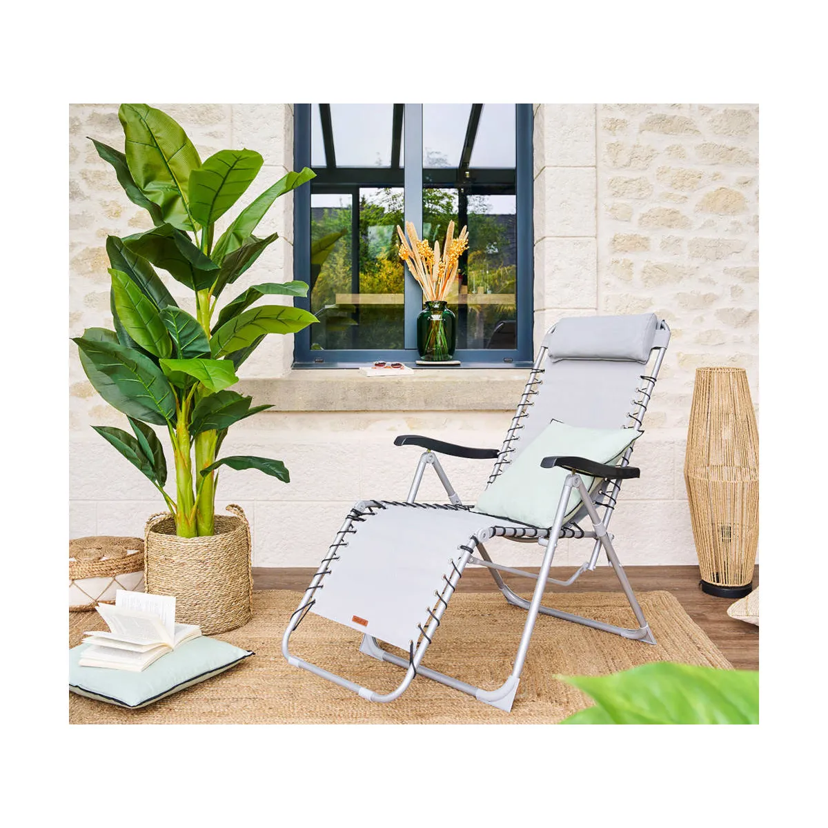 Facile à manipuler et légère, la chaise longue Silos vous accompagne partout dans le jardin.