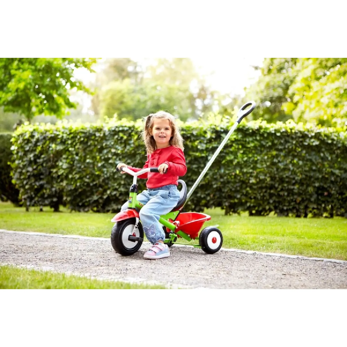Tricycle enfant - Canne-poussoir incluse - Charge max 50 kg - Angle de braquage limité