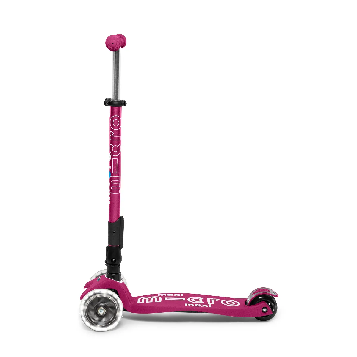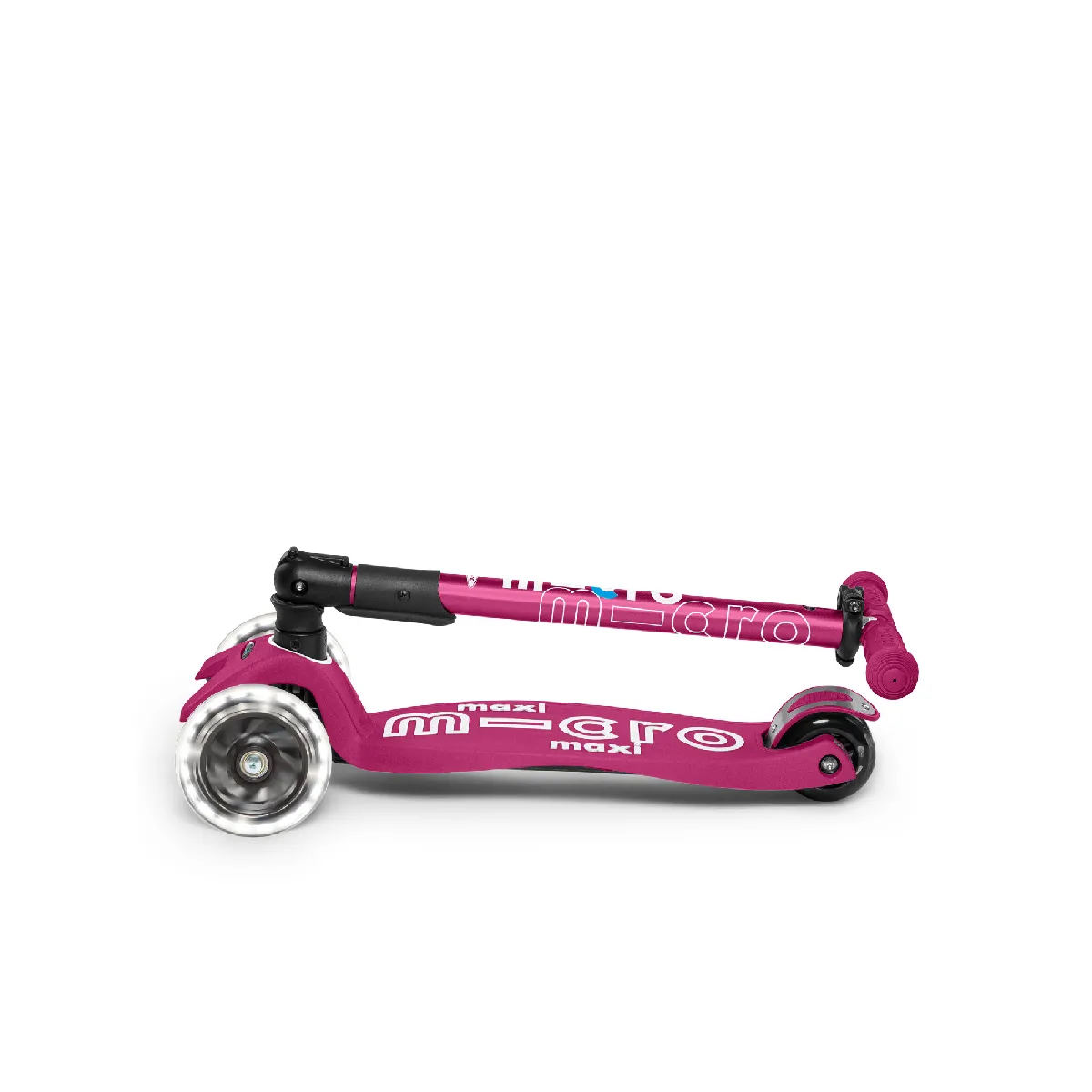 La trottinette pliable des juniors en version lumineuse, la Maxi Micro Baie Rouge !