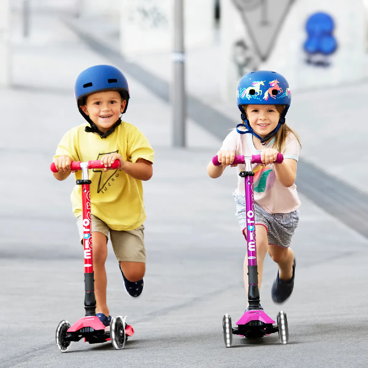 La Maxi Micro est parfaite pour les enfants plus grands, avec une planche plus large et un guidon plus haut. Le poids des Maxi est légèrement plus élevé que celui des Mini.