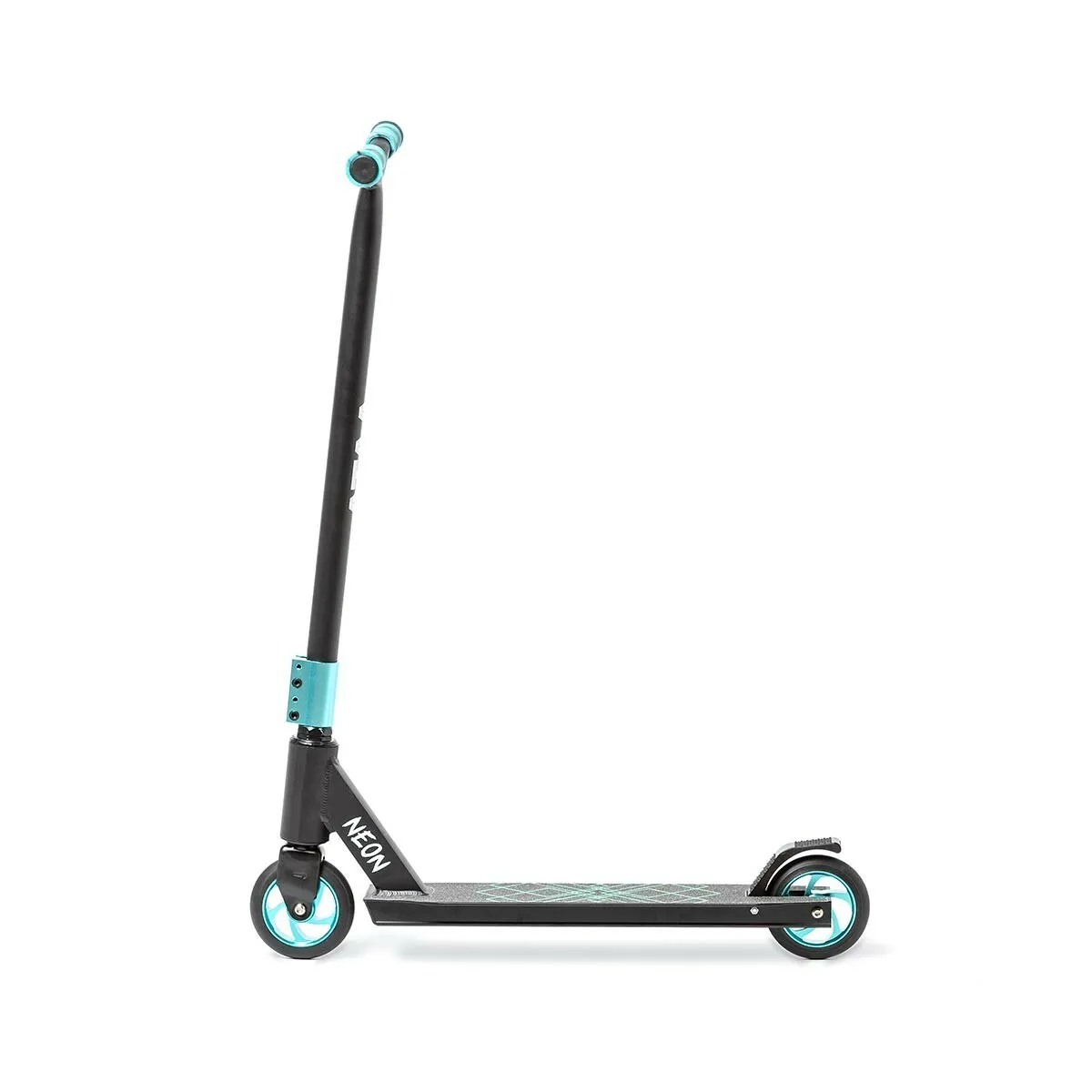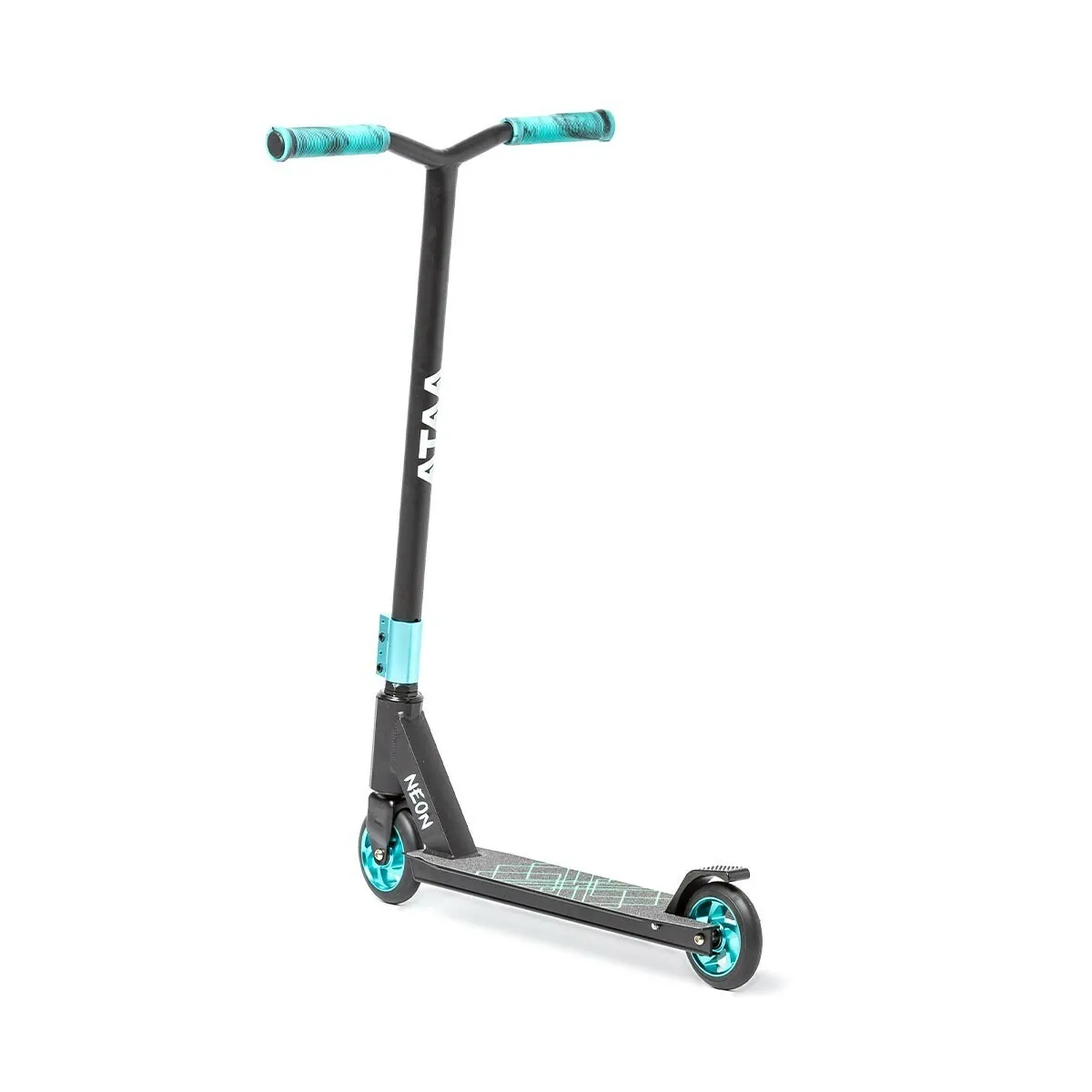 Trottinette freestyle avec plateau en aluminium et roues de 110 mmPour faciliter, améliorer et augmenter votre répertoire de figures, la trottinette freestyle Neon est la trottinette qu'il vous faut. Cette trottinette adulte, en plus d'être très stylée avec ses graphismes futuristes, a tout ce qu'il y a de mieux pour pratiquer la trottinette en tant que sport. En commençant par le guidon, il peut pivoter à 360º, il est en forme de T, en acier avec 4 points de fixation ce qui augmente sa résistance et sa rigidité, il est presque impossible de le casser. Si l'on regarde la plateforme de la trottinette Neon, son deck est en aluminium et sa structure permet une bonne stabilité et une meilleure glisse sur les grinds. D'autres aspects très appréciés du scooter Neon sont ses roues de 110 mm avec un noyau radial en aluminium Core, résistantes et élégantes à la fois, ce sont les dimensions préférées des riders professionnels car avec leur roulement ABEC-9, elles sont plus rapides, plus fluides, durent plus longtemps et permettent un meilleur contrôle du frein arrière. Le profil de la trottinette freestyle NEON est étroit, ce qui se traduit par moins de friction et donc plus d'accélération. Alors n'hésitez plus, la trottinette freestyle Neon sera la star du skatepark et de la rampe, avec elle vous pourrez vous entraîner et pratiquer toutes sortes de tricks avec un style unique.Caractéristiques de la Trottinette Freestyle Adulte Neon :- Marque : ATAA- Modèle : NÉON- Design réalisé en Europe.- Guidon en acier- Plate-forme en aluminium- Fourche en acier monobloc.- Poignée en gomme grip.- Roues en PU de 110 mm avec radial en aluminium CORE- Dureté des roues 82A- Roulement ABEC-9.- Pédale de frein arrière.- Plate-forme antidérapante.- Guidon avec 4 points de fixation.- Poids maximal : 100 kg.- Poids du scooter : 3,5 kg.- Dimensions de la trottinette : 65 ( longueur totale ) x 46 ( largeur guidon ) x 85 (hauteur totale) cm- Taille recommandée :- Certificats CE.ATAA vous recommande de porter un équipement de protection adéquat pour la conduite d'un scooter (casque, genouillères et coudières).La plupart des accidents surviennent durant les premiers mois de pratique : nous vous conseillons de prendre votre temps pour apprendre à manier la trottinette et à maîtriser vitesse et freinage en cas d'urgence et par tous les temps (surtout sur sol mouillé).