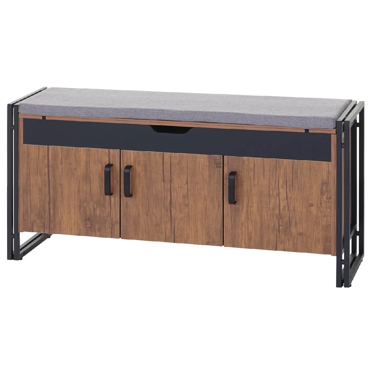 Côté structure, la banquette combine MDF pour les façades et cadre en métal pour une meilleure stabilité. Le module mural mesure env. 100 x 80 x 21,5 cm, la banquette 53 x 110 x 30 cm, avec compartiments fermés de 28 cm de hauteur pour organiser chaussures et accessoires. Un compartiment sous assise (100 x 25,5 x 6,5 cm) garde les objets à portée de main. L'ensemble peut être coordonné avec d'autres meubles de la série A-27 afin d'harmoniser le rangement de l'entrée.