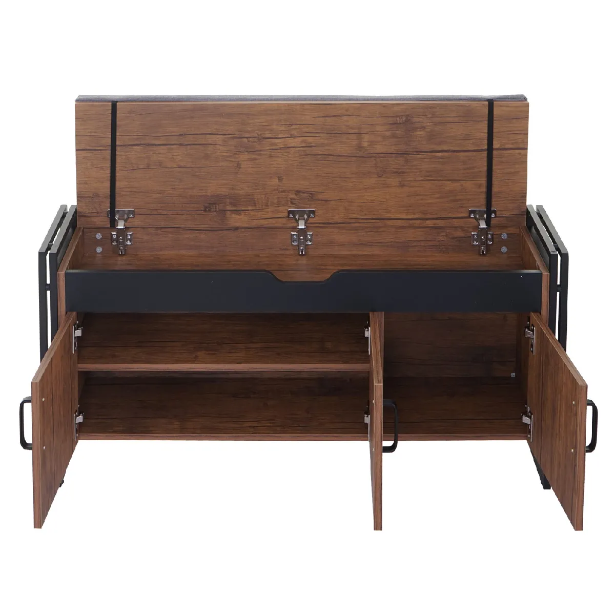 - Rangements : 2 compartiments à portes avec étagère + 1 compartiment à porte sans étagère