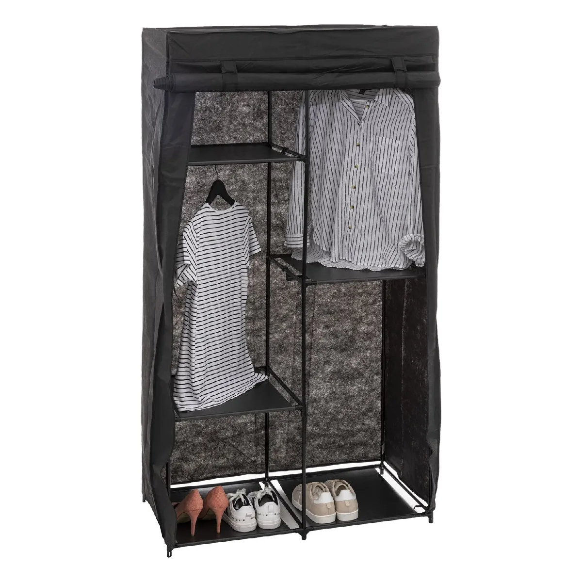 Five Simply Smart - Armoire en tissu modulable avec 3 penderies et 5 étagères - Noir - Design