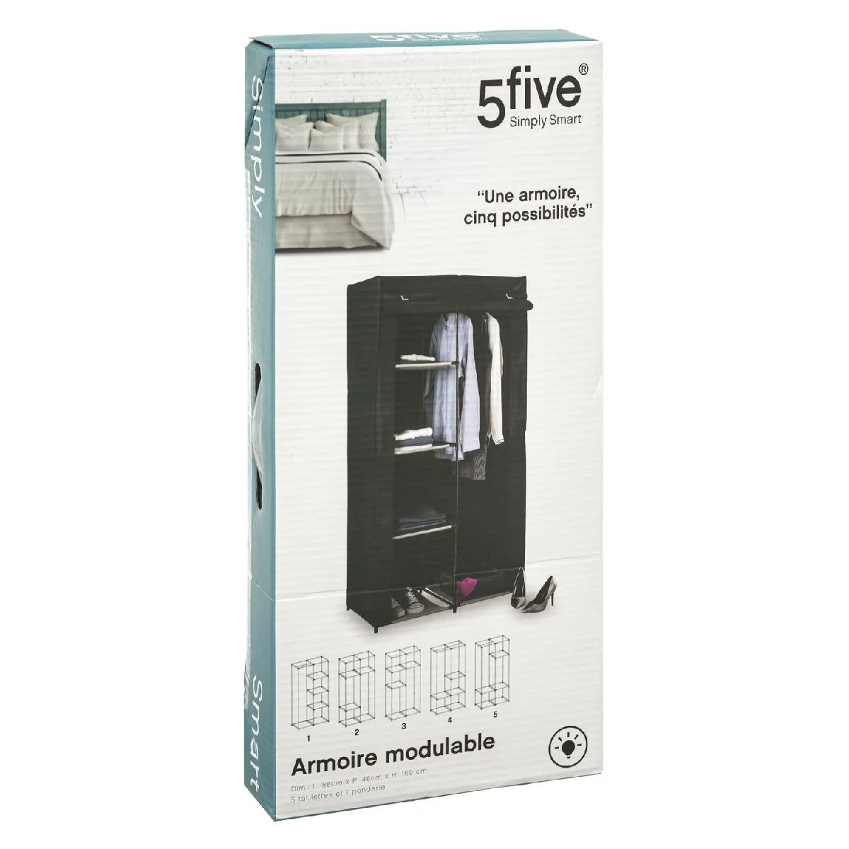 Five Simply Smart Armoire en tissu modulable avec 3 penderies et 5 étagères - Noir |