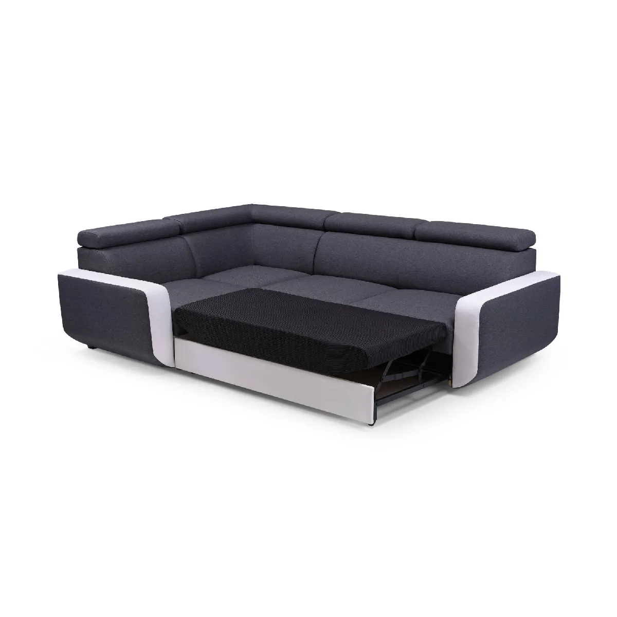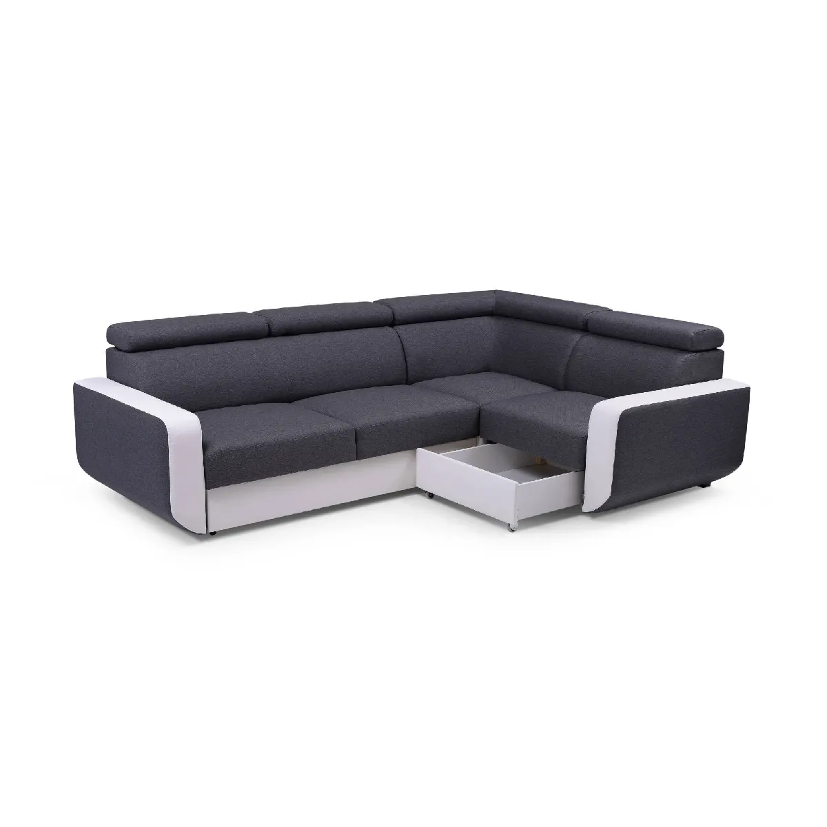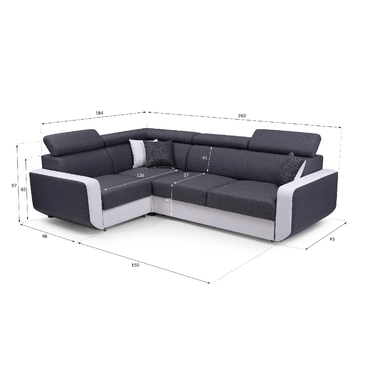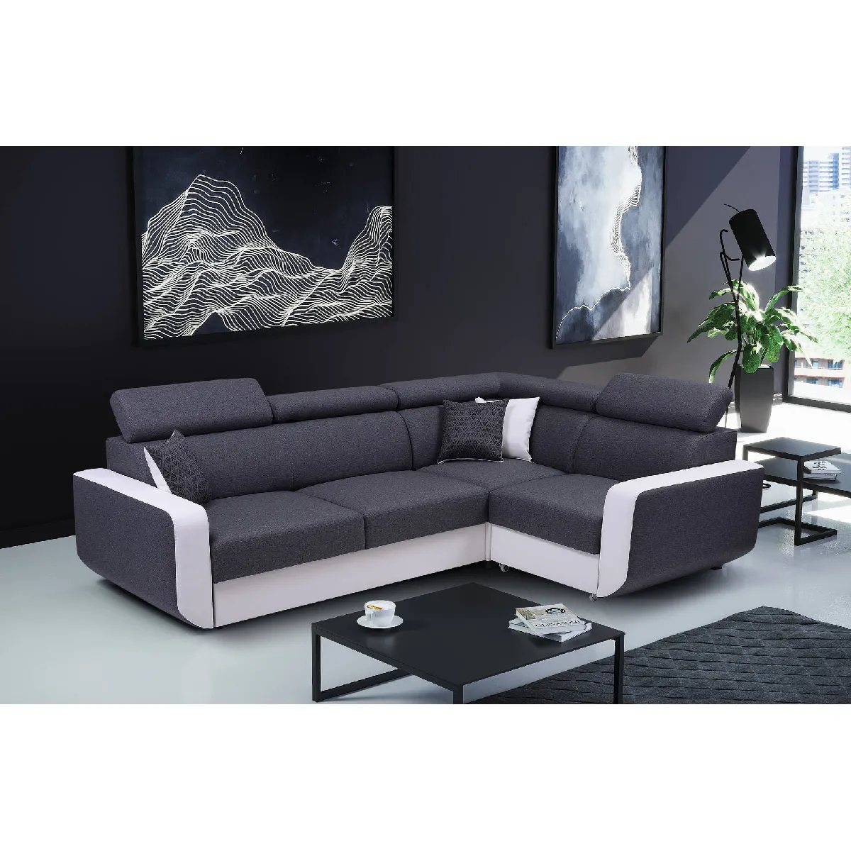Dustin - Canapé d'angle L réversible - 5 places - Convertible avec coffre - Têtieres réglables - Blanc / Gris