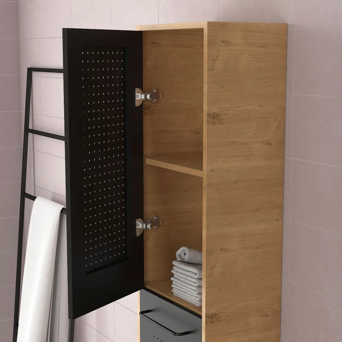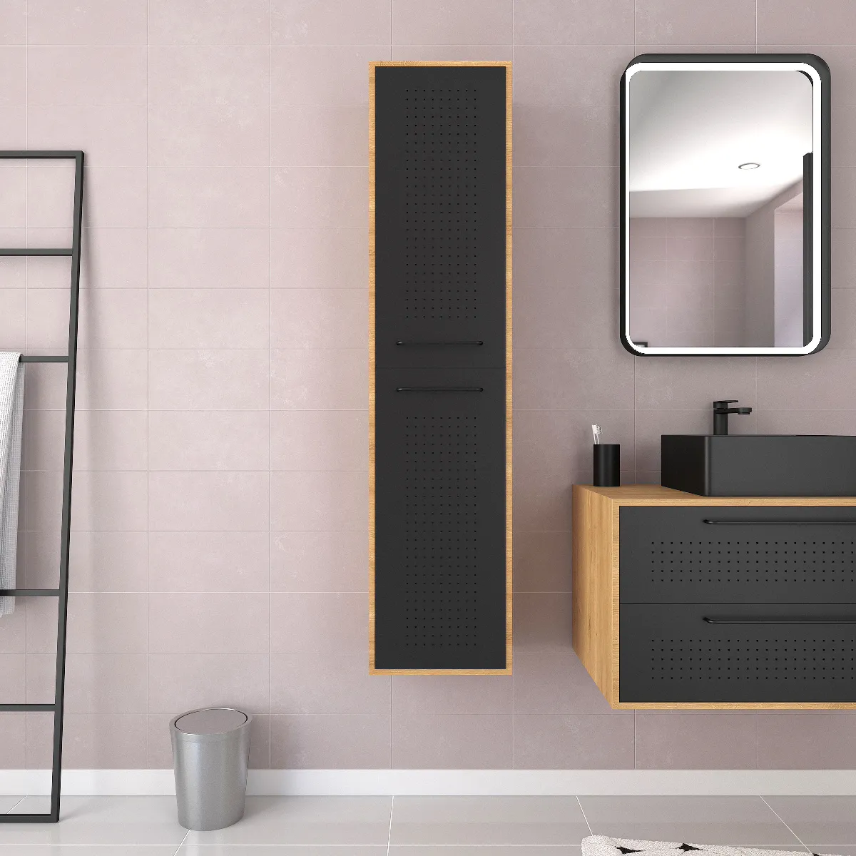 Colonne salle de bain - Chêne naturel - Espace rangement - Conception française