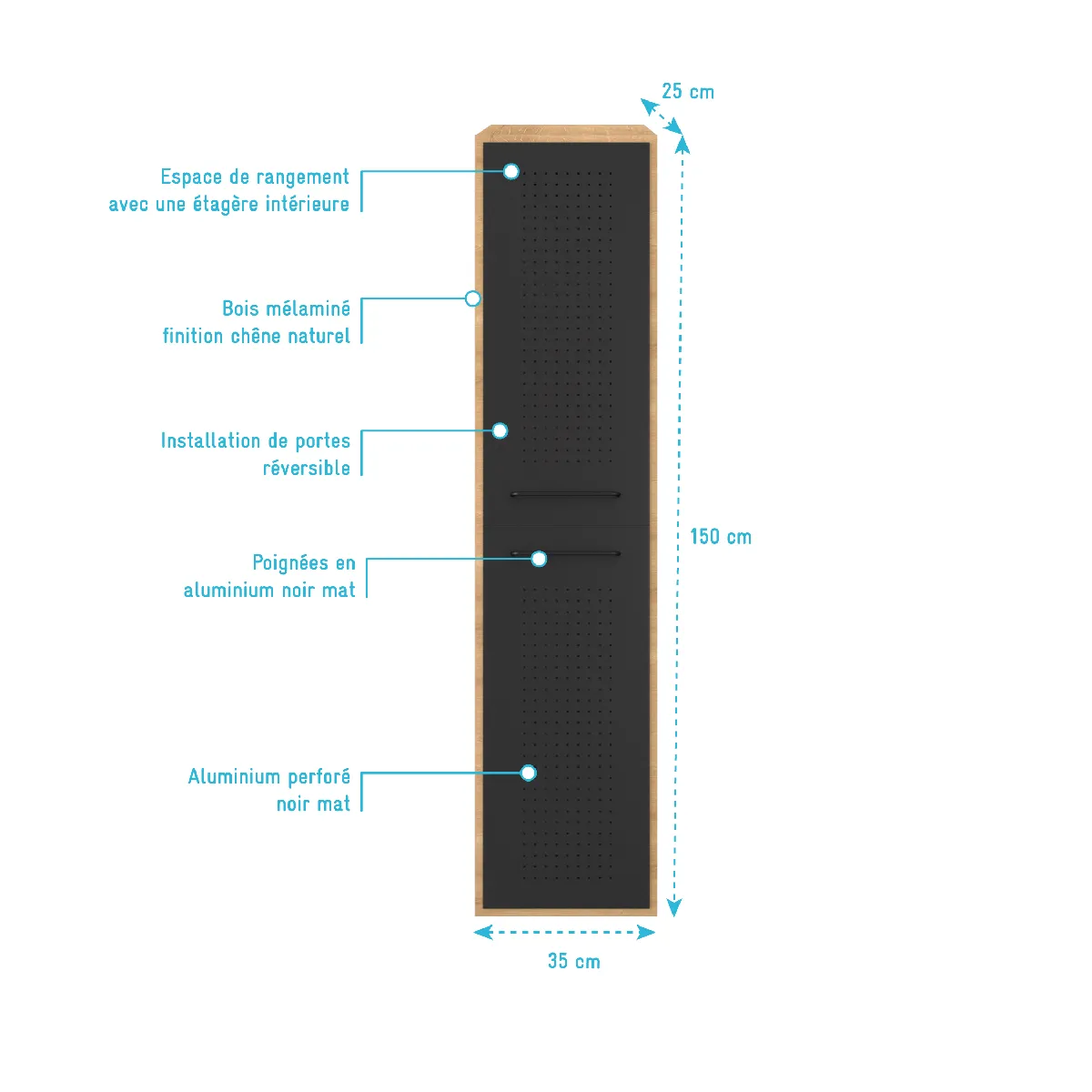 - 2 Portes finition aluminium perforé noir mat