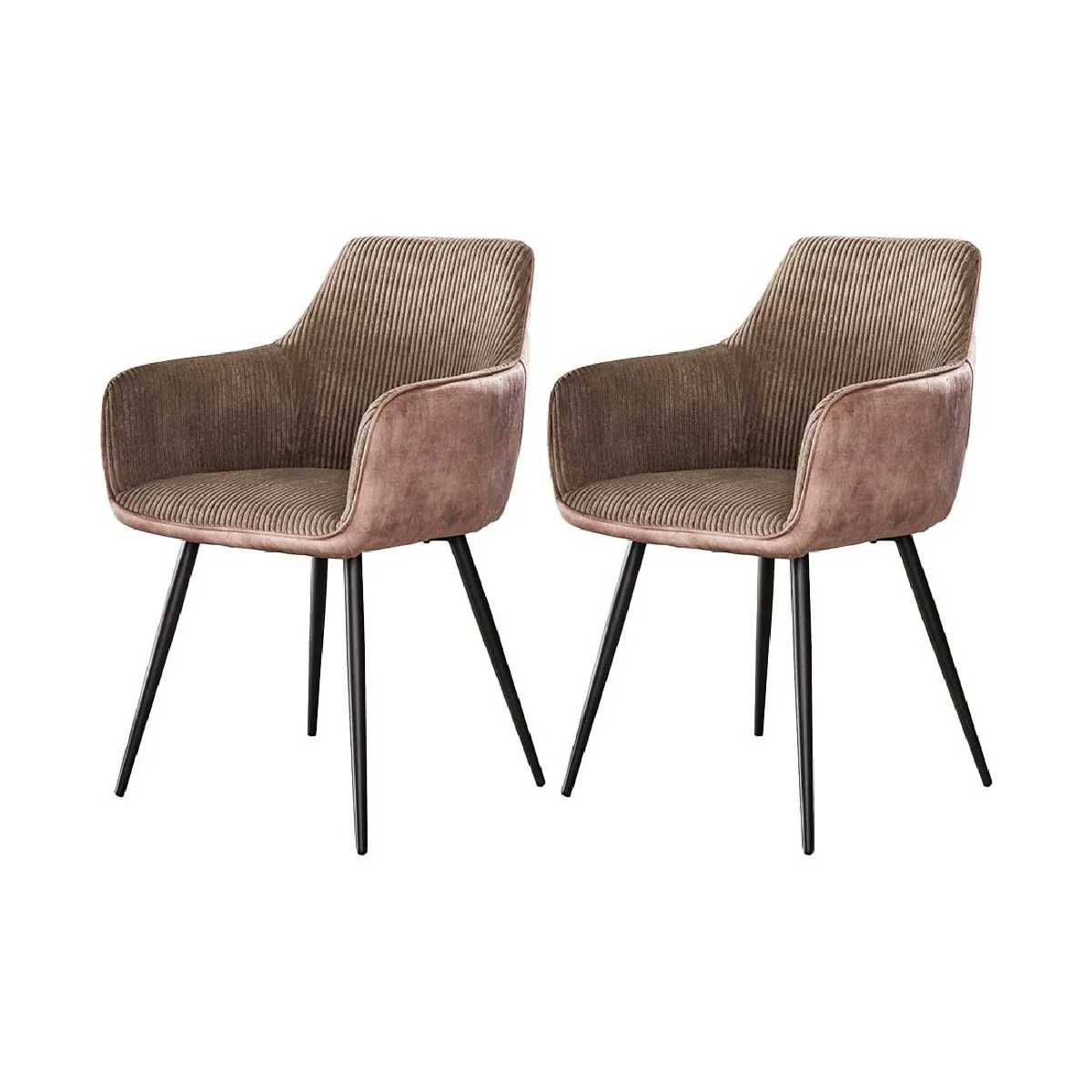 Commentaire vendeur : Caractéristiques techniques :Origine : AsieGarantie : 2 ansCouleur : TaupeType de chaise : Chaise de tableDéhoussable : NonAvec accoudoirs : OuiEmpilable : NonMatière de la structure : Acier/MétalMatière : Velours côtelé/VeloursDétail des matières : Matières principales?: Acier/Métal – Matière de l’assise : Velours côtelé/Velours – Finition?: Satinée – Pieds en métal – Résistant à l’humidité et aux rayuresFinition : SatinéePieds : MétalPoids : 12Présentation de la marque : Chez Lisa Design nous savons que votre maison est l’endroit où vous créez des moments inoubliables. Nous vous proposons du mobilier alliant confort, fonctionnalité et esthétisme. Découvrez nos produits allant des meubles de séjour aux canapés.Collection : LORMIPrésentation de la collection : Découvrez les fauteuils Lormi en velours côtelé et simple, disponibles en plusieurs coloris. Faciles à monter et parfaits avec nos tables, ils allient confort et élégance.Vendu par lot de : 2Montage : En quelques minutesNombre de colis : 1Dimensions du produitHauteur : 85 cmLargeur : 57 cmProfondeur : 45 cmHauteur d'assise : 47 cmLargeur d'assise : 40 cmProfondeur d'assise : 45 cmDimensions des colisNombre de colis : 1Colis 1 : 68x56x57 cm (14kg)EntretienIl est recommandé de nettoyer les salissures légères avec un chiffon légèrement humide. Terminer en essuyant avec un chiffon sec. Eviter l’utilisation de produits chimiques.Bon à savoirLes couleurs des produits affich...