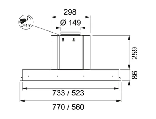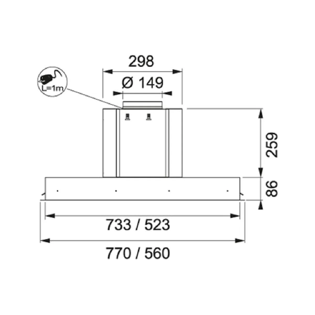 Avec un format intégrable, ce groupe filtrant s'insère dans un meuble de largeur 56 cm et une niche d'encastrement de 52,3 x 29,8 x 8,6 cm. La finition inox assure une bonne résistance et un entretien simple. Le diamètre de sortie de 150 mm facilite le raccordement lorsqu'une évacuation est envisagée, tout en garantissant un passage d'air optimisé. La hauteur de pose recommandée est de 500 mm au-dessus d'une plaque électrique et 550 mm pour une plaque gaz, pour un captage efficace sans gêner la préparation.