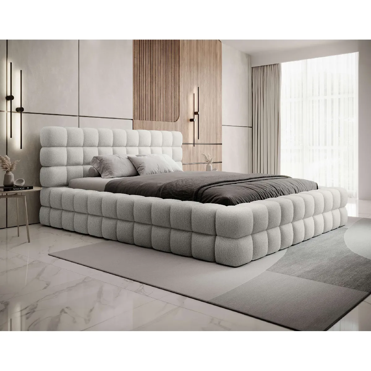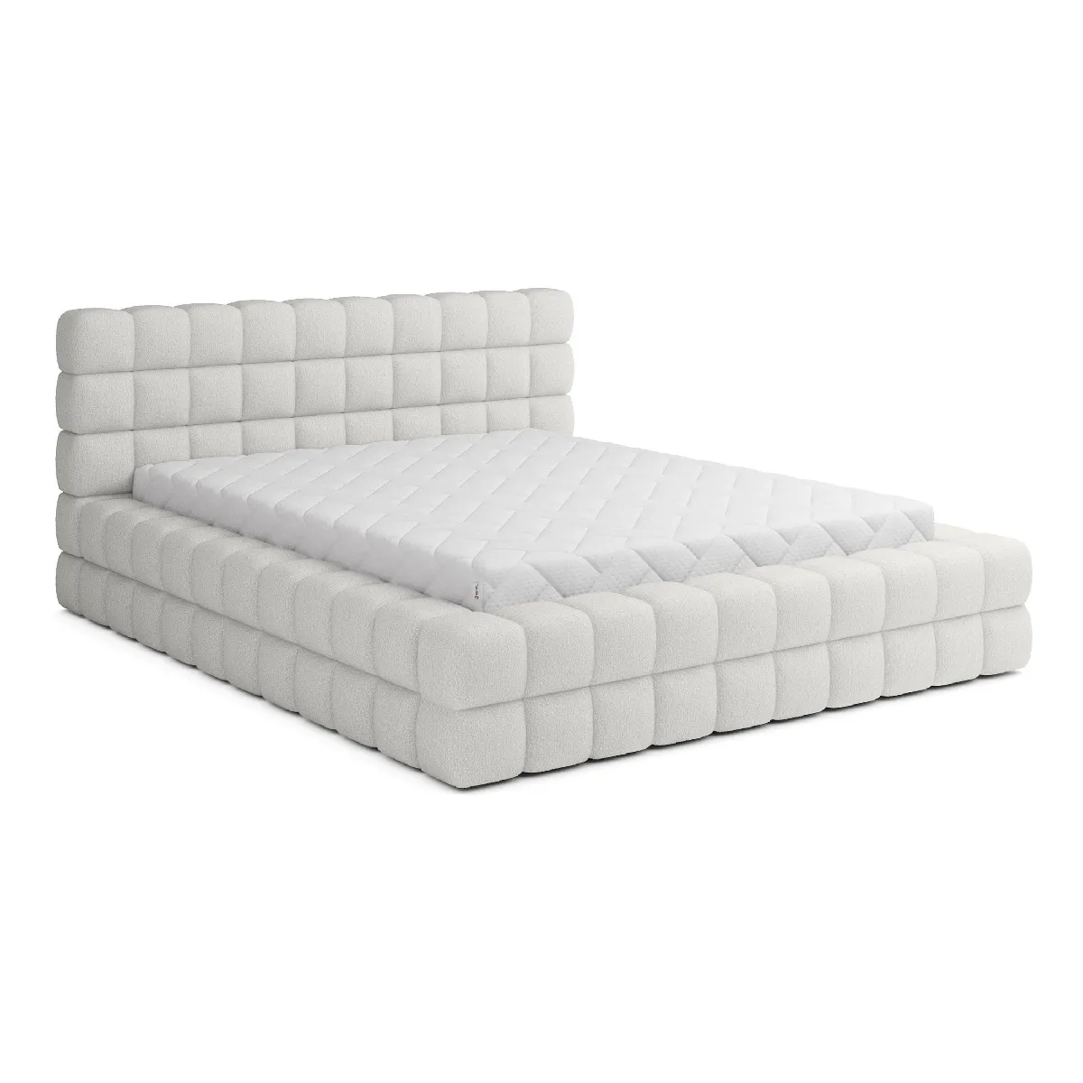 Lit coffre 160x200 cm - Sommier inclus - Tissu bouclette blanc