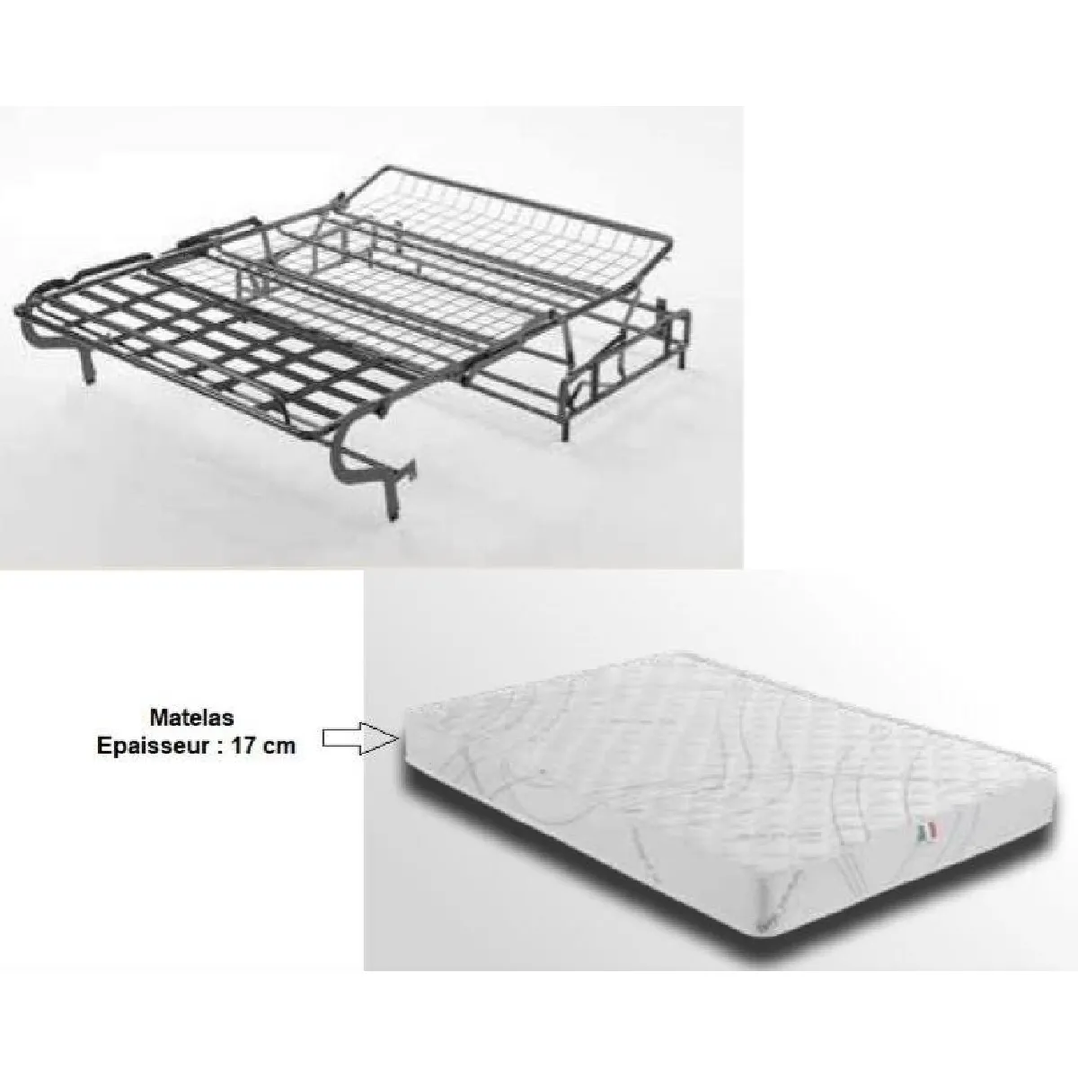 - Mécanique : Grille métallique standard électro-soudée avec bandes élastiques