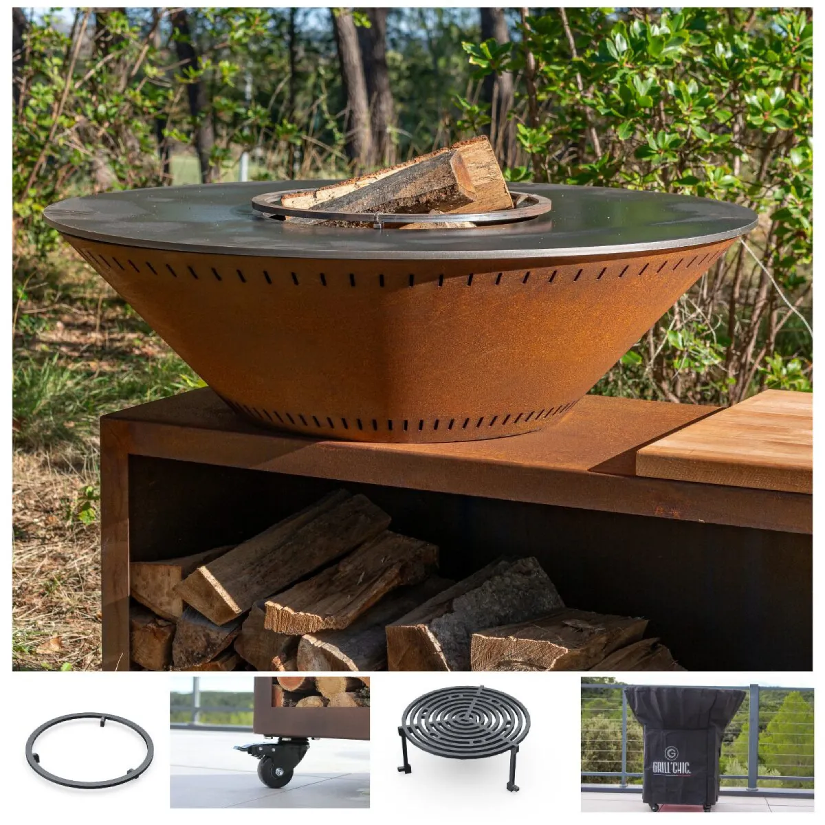 Braséro plancha double cuve - Acier corten - 100x90 cm - Barbecue extérieur