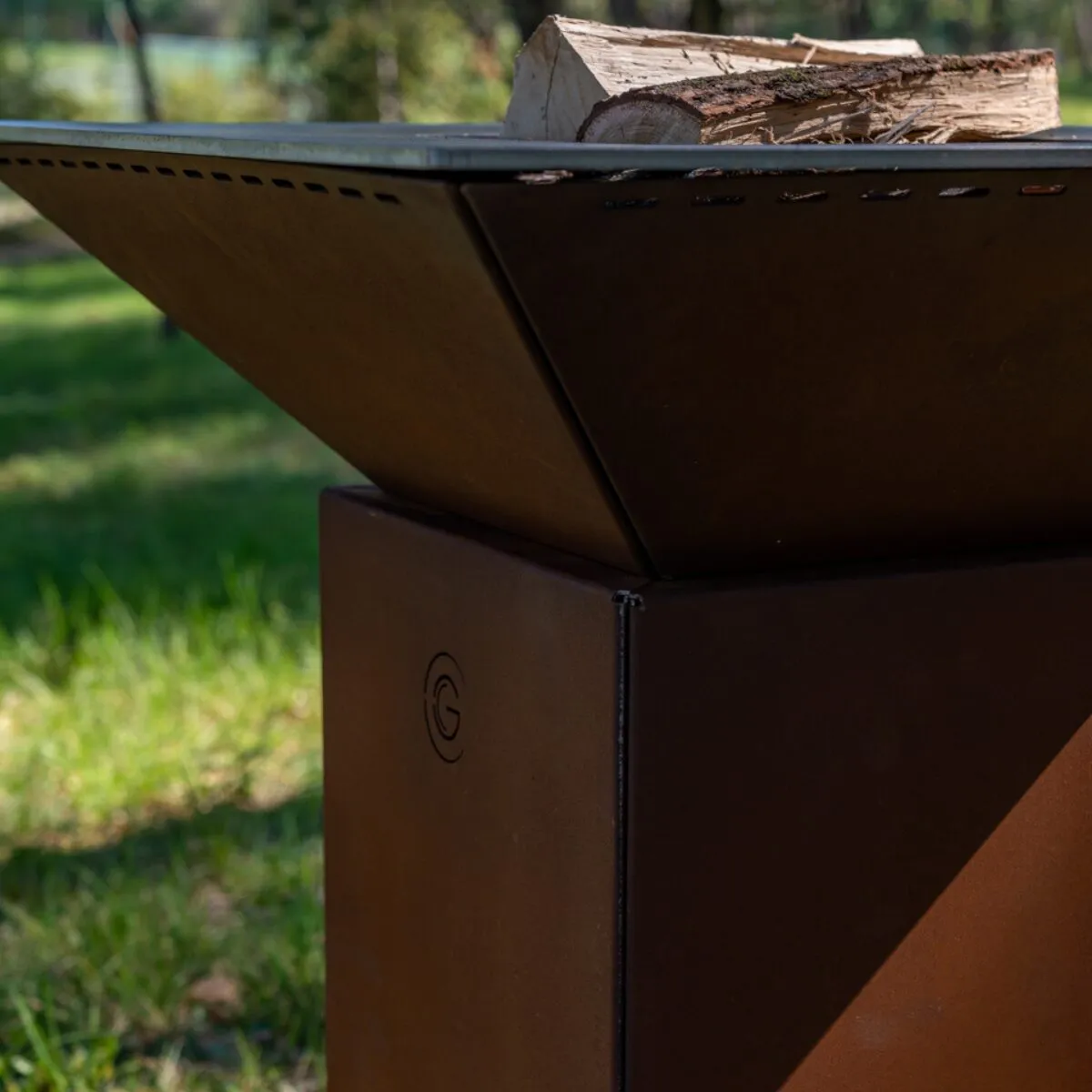 Braséro plancha avec range-bois - Acier corten - BBQ extérieur