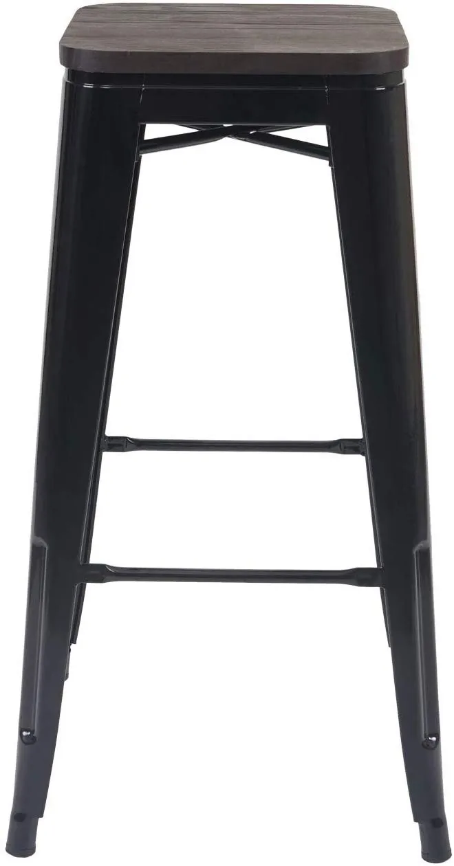 La structure en métal enduit de poudre résiste aux marques du quotidien, tandis que l'assise en bois d'orme apporte un toucher naturel. L'ensemble adopte un style industriel sobre en finition noire qui s'intègre aisément dans des cuisines ouvertes, coins bar et espaces conviviaux. Le format empilable simplifie le stockage, et les patins en caoutchouc évitent les rayures sur les surfaces. Chaque tabouret reste stable grâce aux renforts croisés sous l'assise et entre les pieds, utiles pour une utilisation régulière.