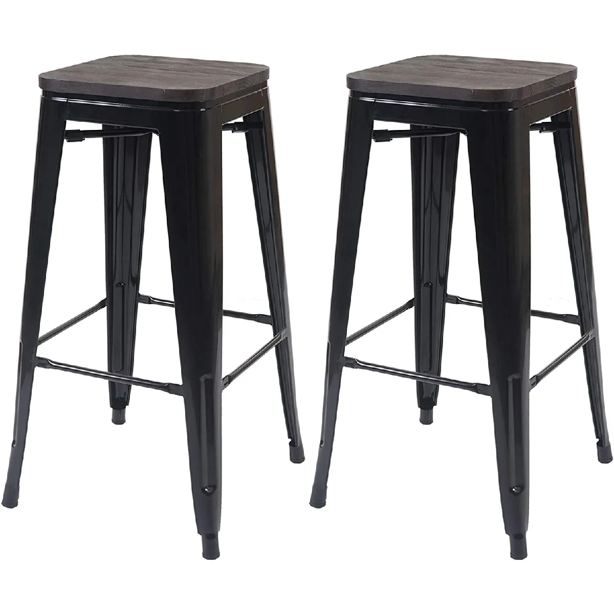 Decoshop26 Lot de 2 tabourets de bar - Noir