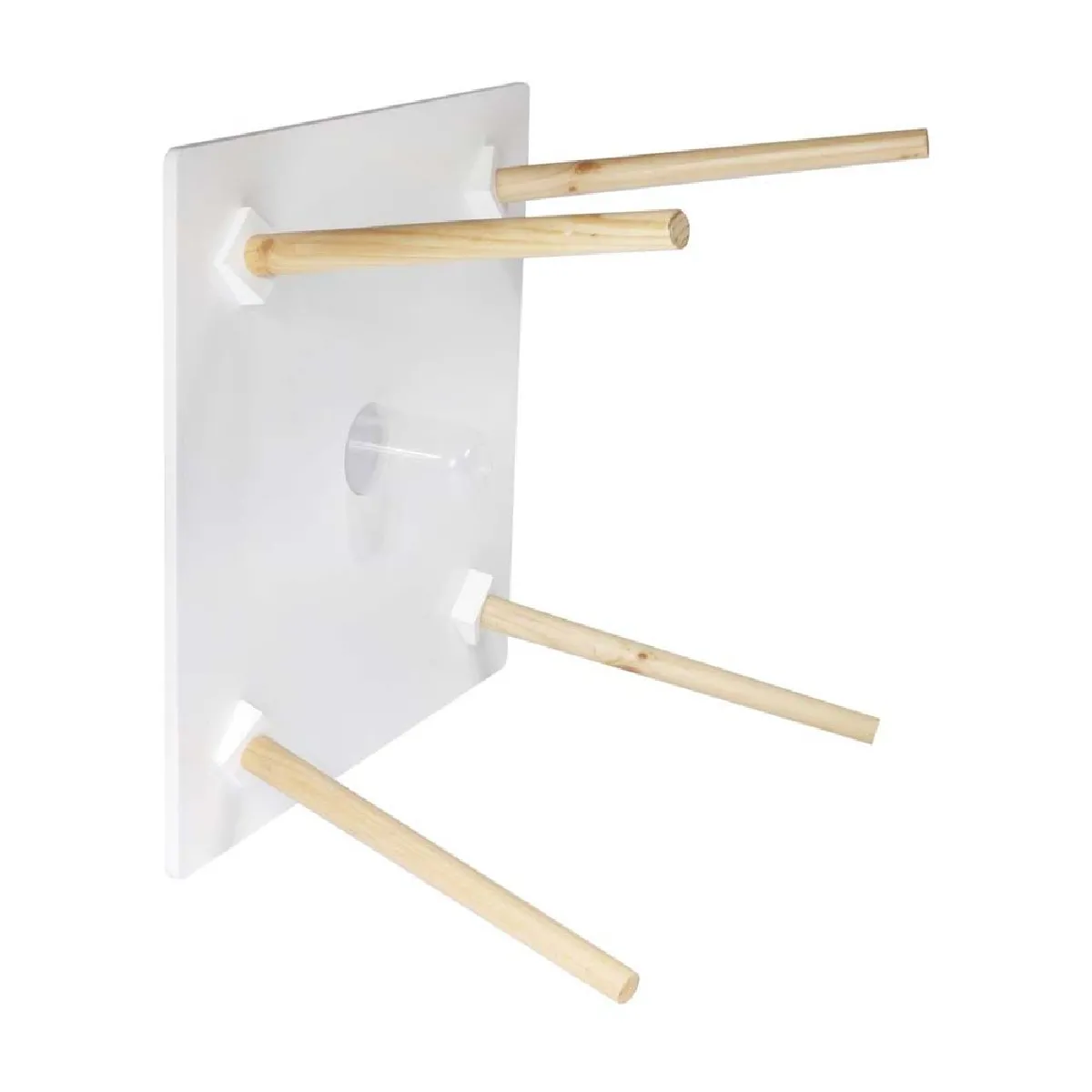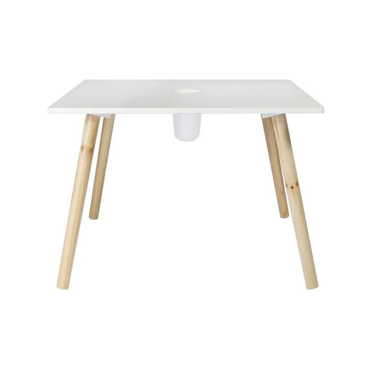 Un espace adapté à la taille des plus jeunes favorise des activités calmes et ordonnées. Cette table enfant présente une hauteur de 41,8 cm, pratique pour dessiner et faire des jeux de manipulation sur une surface dédiée. Le plateau en MDF de couleur blanche s'accorde à un intérieur au style simple et lumineux, tandis que les pieds en pin d'inspiration scandinave assurent une bonne stabilité. Un pot à crayons intégré permet de ranger feutres et accessoires à portée de main, limitant l'encombrement. Sans tiroirs ni étagères, elle reste facile à maintenir propre et claire pour les activités du quotidien.