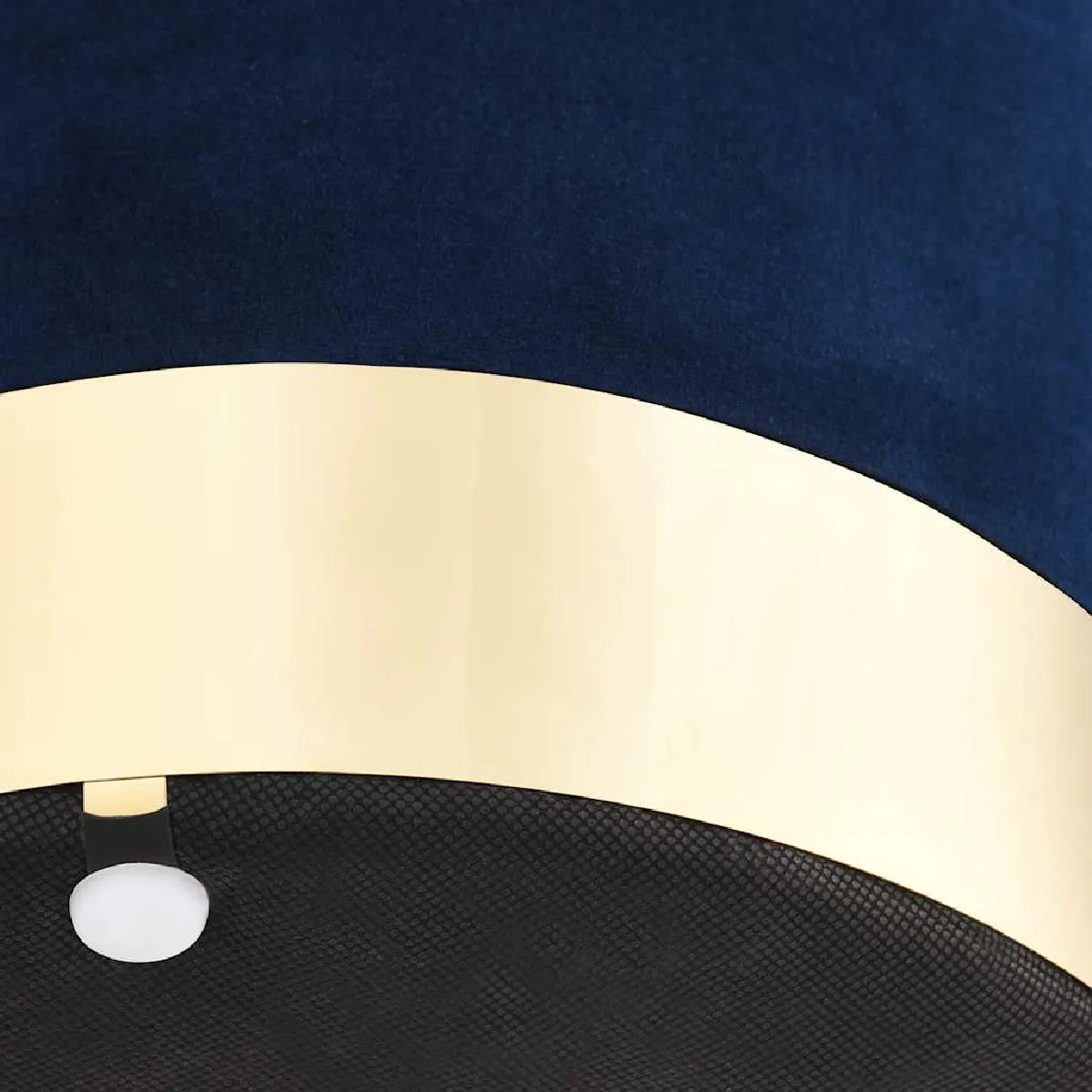Tabouret - Velours bleu - Base métallique dorée - Design tonneau - Léger et élégant