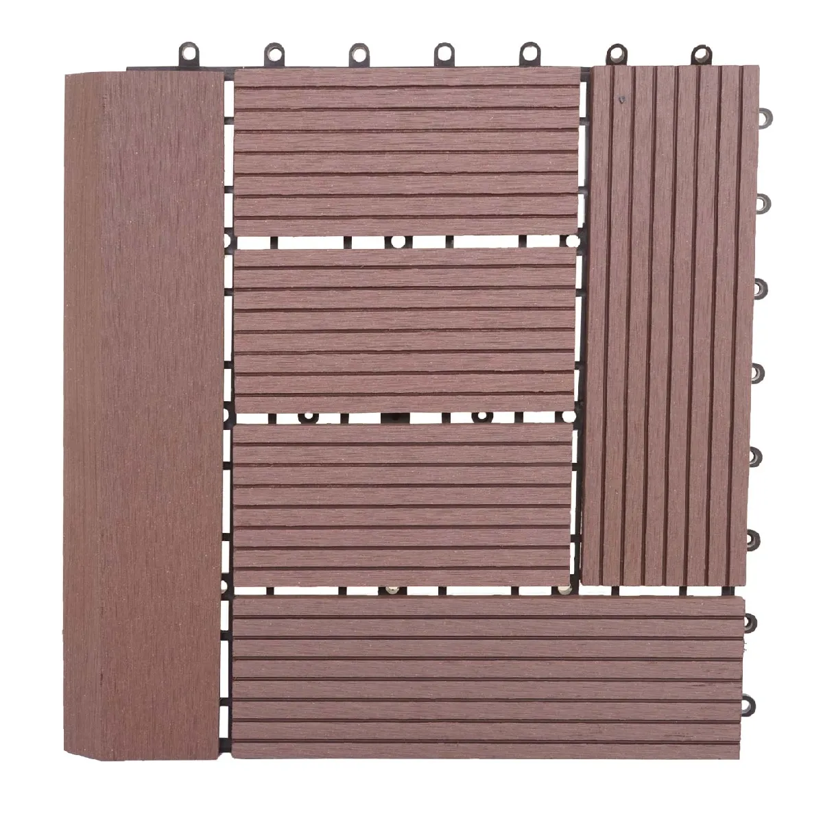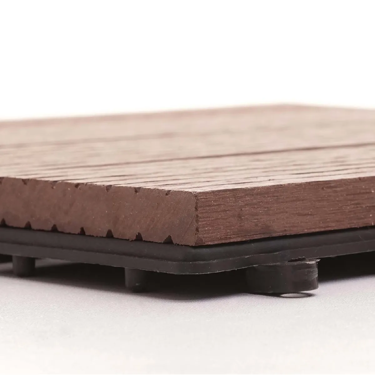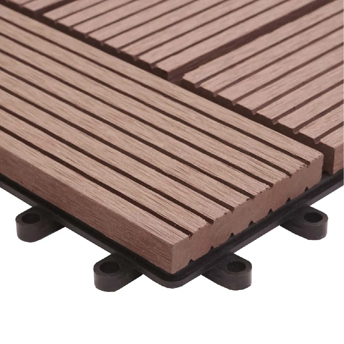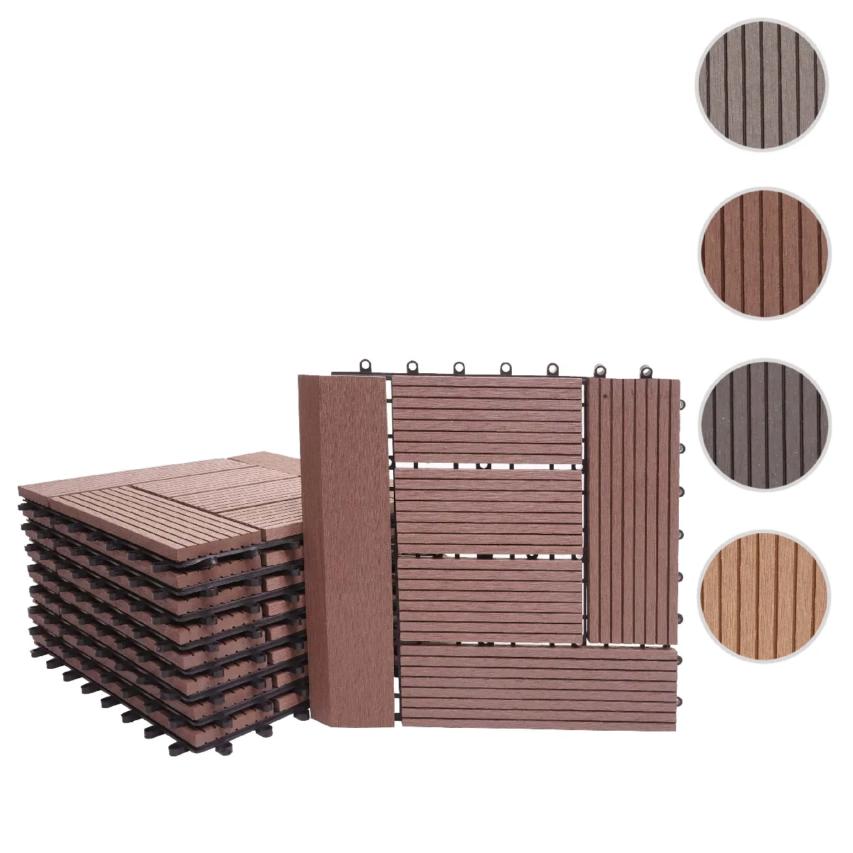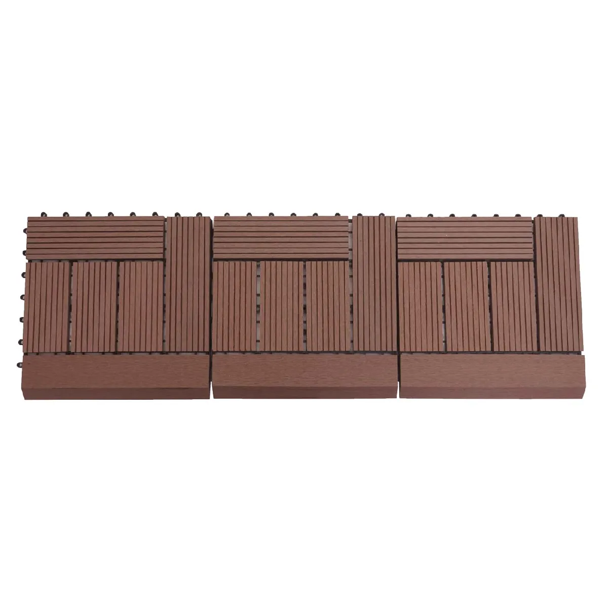 Carreau de sol WPC Rhône + bordure, aspect bois, balcon/terrasse, 11x chaque 30x30cm = 1m² Premium ~ café, échelonné