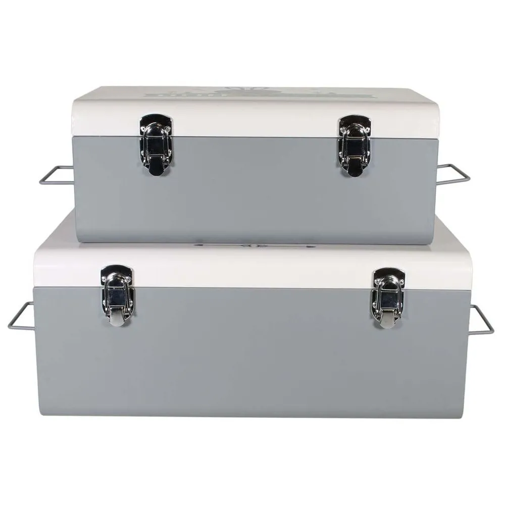 Idéales pour organiser les jouets et accessoires d'une chambre d'enfant, ces malles proposent une solution de rangement compacte et facile à déplacer. Le lot de deux formats s'adapte aux espaces sous étagère ou au pied du lit pour une pièce ordonnée sans effort. Leur structure en métal offre une bonne tenue au quotidien avec des surfaces simples à nettoyer. Les fermoirs métalliques maintiennent le contenu à l'abri des petites chutes d'objets, tandis que la teinte grise s'accorde facilement avec des univers ludiques. Sans roulettes, elles restent stables sur une commode ou au sol, pour un rangement pratique des livres, peluches et fournitures créatives.