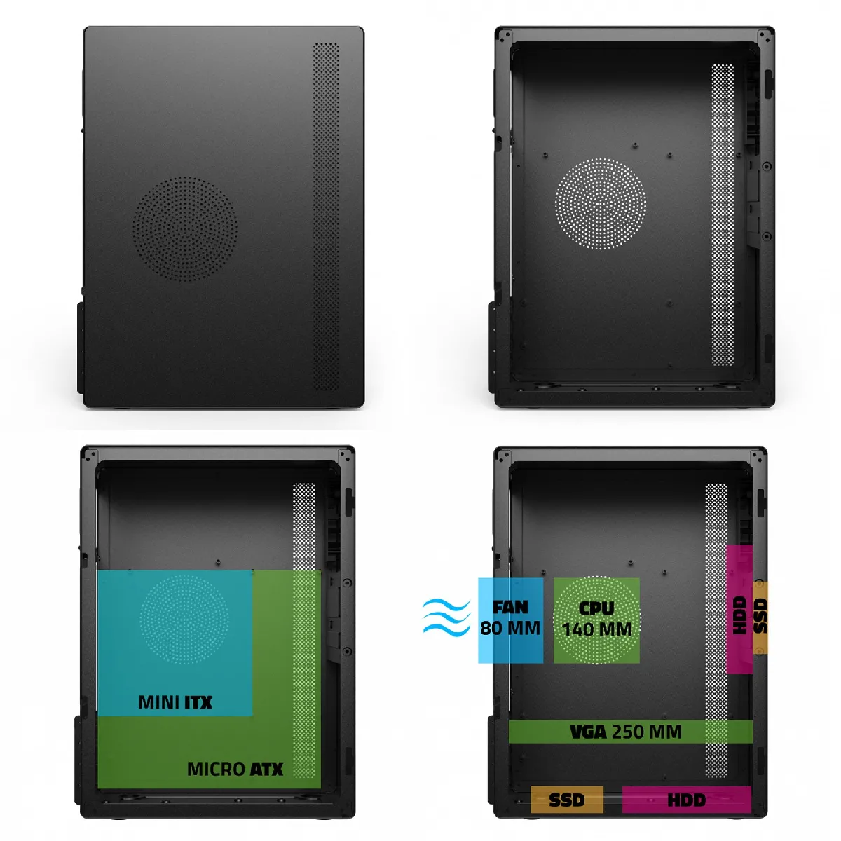 Châssis PC - mATX/mITX - 4 extensions - 3.5", 2.5" baies - Noir