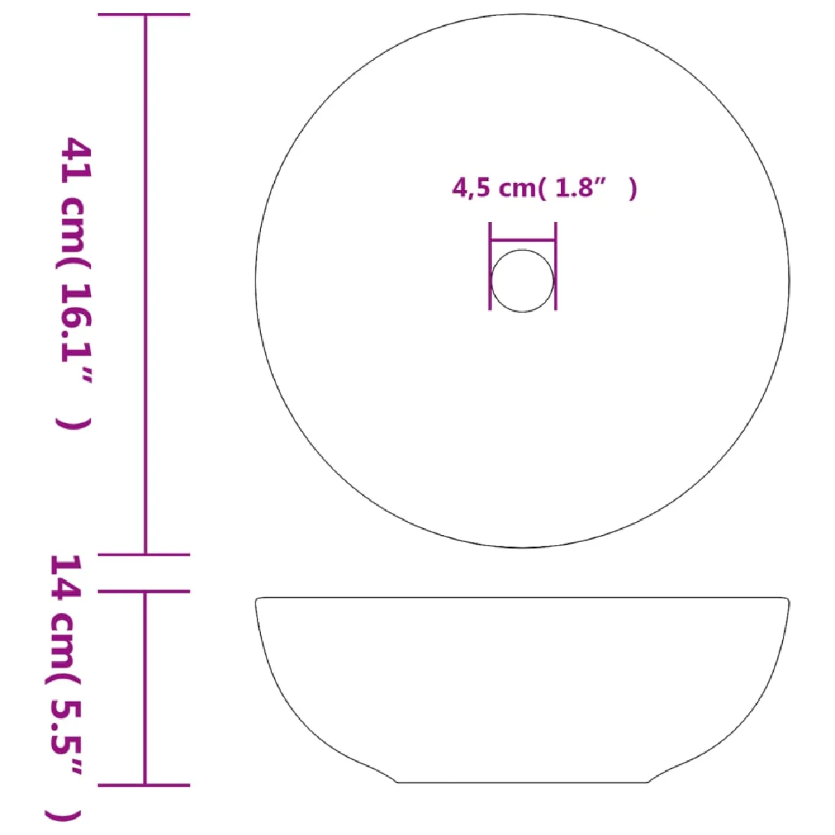 - Dimensions totales : 41 x 14 cm (diamètre x H)
