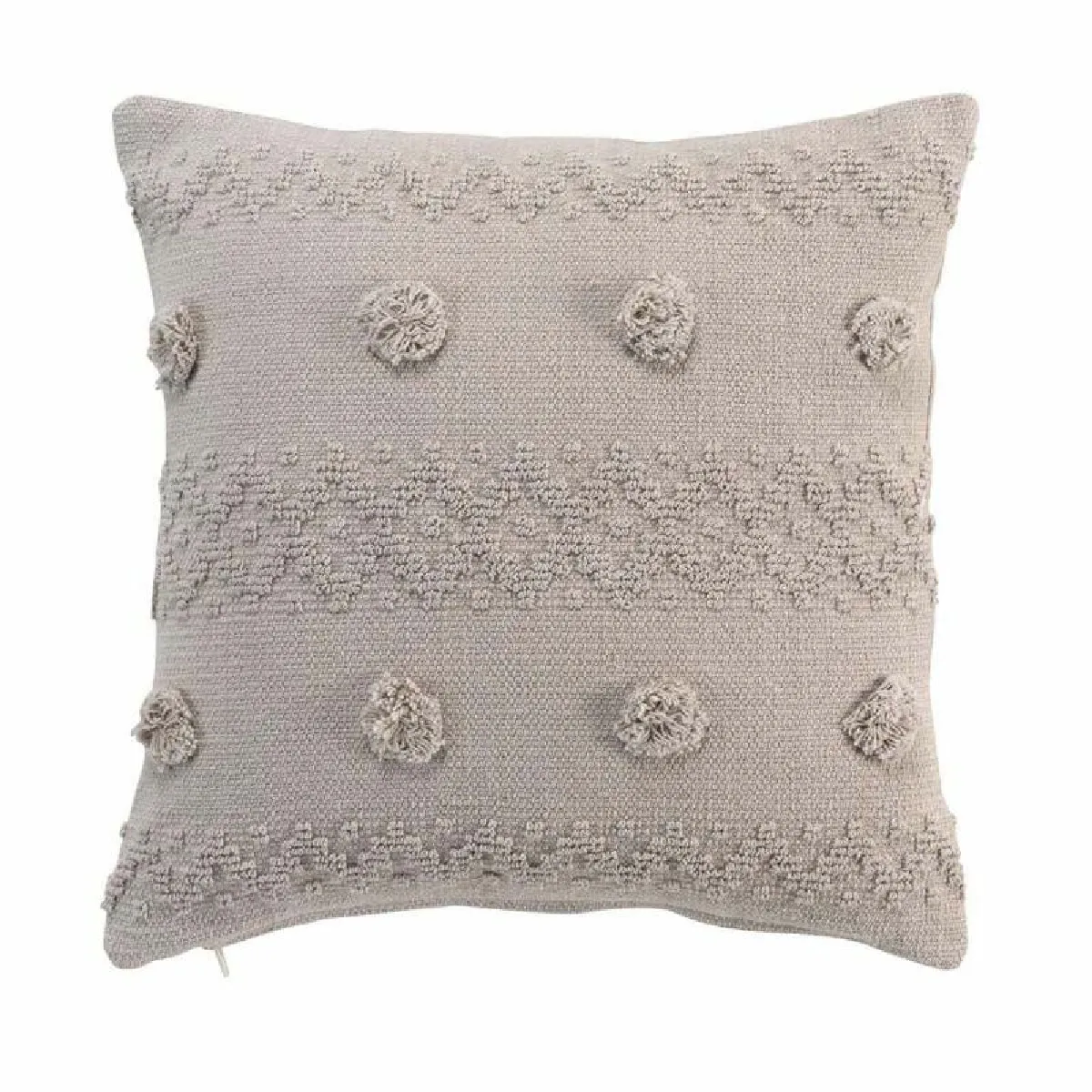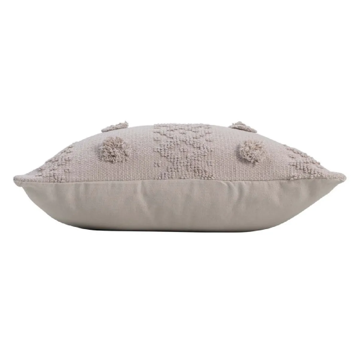 Coussin déco - Coton et polyester - Avec pompons - Lin