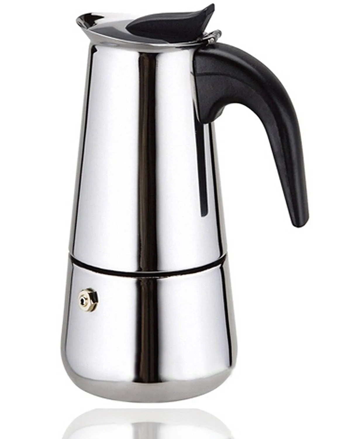 Cafetière italienne (Moka) - Acier inoxydable - Filtre permanent - Café moulu - 4 tasses - Sans arrêt automatique - Non programmable
