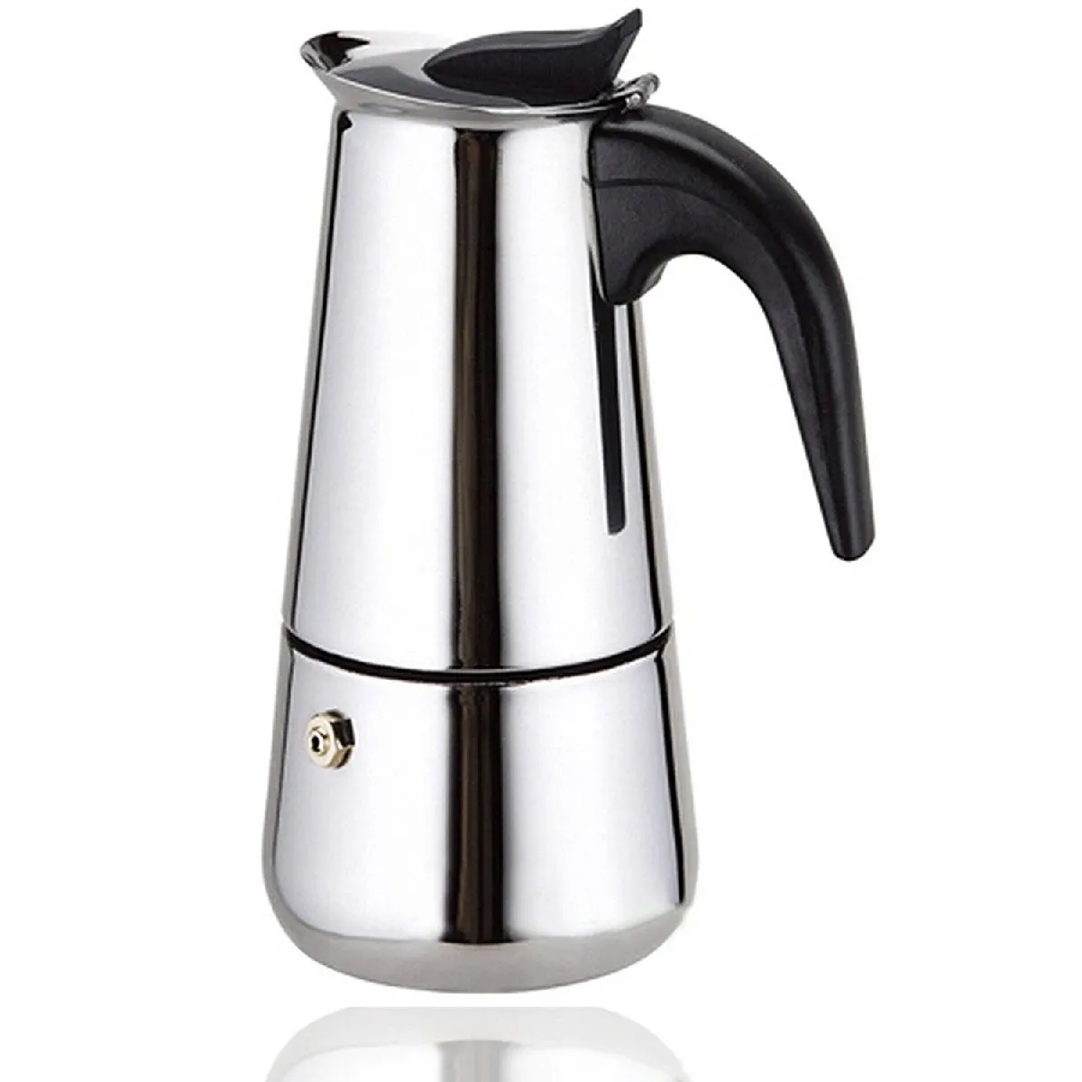 Préparez un espresso de style moka pour jusqu'à 4 tasses grâce à une conception en acier inoxydable qui favorise une extraction régulière. Sa structure robuste en acier inoxydable et son format compact facile à manipuler s'adaptent aux cuisines de toutes tailles. Avec une capacité de 0.324 L, elle convient aux portions du quotidien. La hauteur de 16.2 cm et la base de 9 cm offrent une bonne stabilité sur la plaque de cuisson, tandis que le sommet de 6.7 cm facilite le service. Le filtre permanent évite l'achat de consommables. Sans programmation ni arrêt automatique, l'usage reste simple et maîtrisé manuellement.