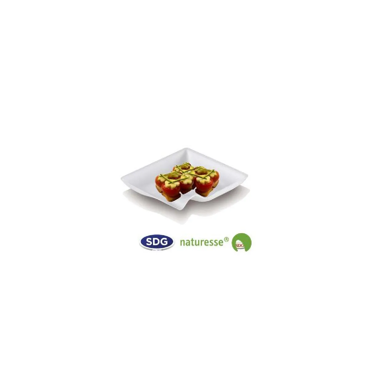 | Pour présenter vos mets gastronomiques tels que des hors-d 'œuvres, des tapas ou des mignardises, à l'occasion d'un apéritifs, d'un happy hour ou pour un buffet, cette assiette à la ligne élégante et originale, est idéale. Cette assiette en pulpe de cellulose de la gamme Bioplat® Bio-Line Ligne Finger Food, est fabriquée à partir de ressources naturelles renouvelables issues d'un rejet spontané de plantes comme la canne à sucre. La vaisselle en pulpe de cellulose est correctement éliminée en milieu humide par compostage et biodégradation. Si dispersée dans la nature, elle se dégrade naturellement sans laisser de traces. Passe au four (maximum 10 min à 100°C) et au micro-ondes (maximum 3 minutes à 800W)Vendue par lot de 500Format carré - Disponible en plusieurs dimensionsContrôlé selon la norme DIN numéro de certification 7P0308 Ne convient pas aux enfants de moins de 3 ansAttention, veillez à ne pas jeter ce produit dans la nature !
