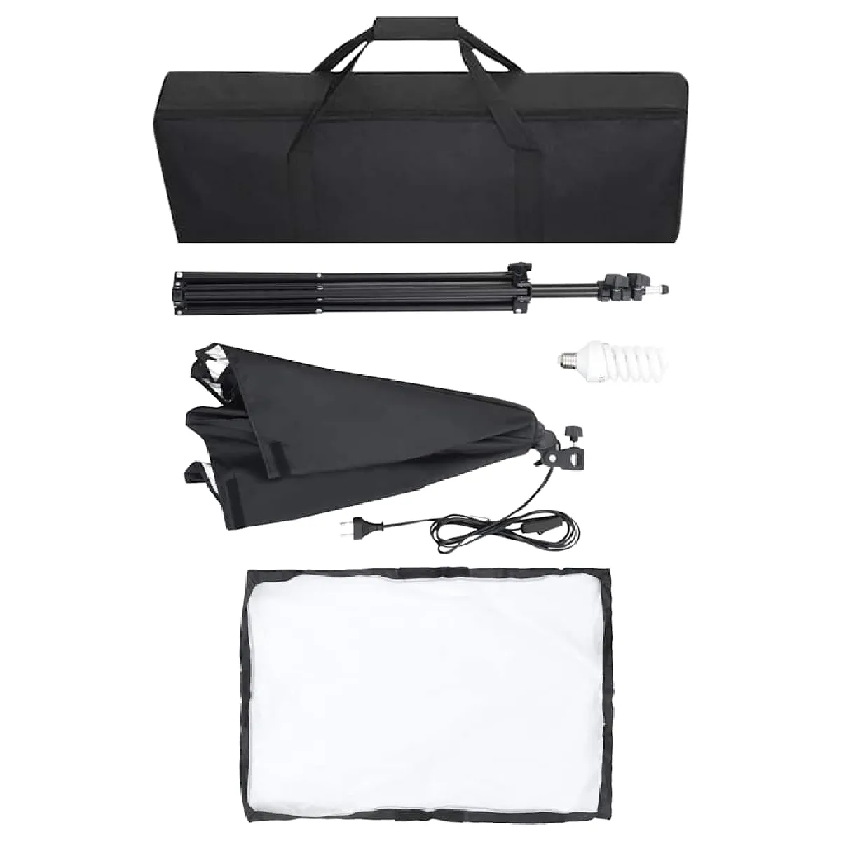La lampe de boîte à lumière de studio est livrée avec un trépied en acier stable et robuste qui est réglable en hauteur de 90 à 208 cm pour mieux répondre à vos besoins. Le trépied a un filetage standard de 1/4" pour tous les appareils photo analogiques et numériques. De plus, elle peut également être utilisée comme appareil photo ou support d'éclairage. Avec le sac de transport inclus, le kit de studio est facile à ranger et à transporter.