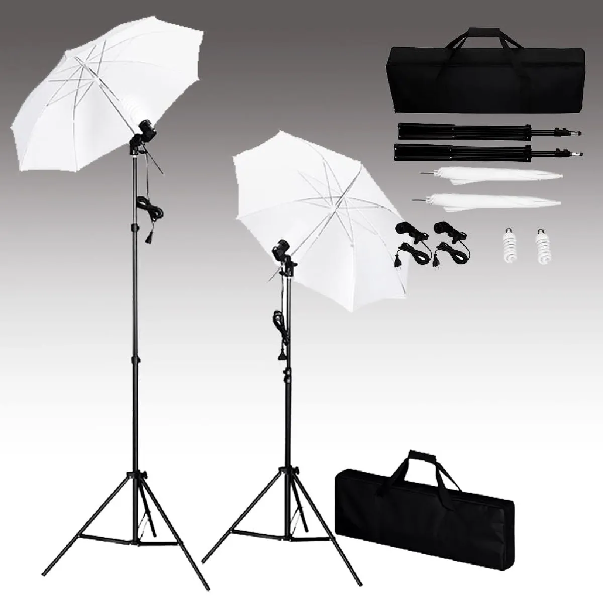 Kit de studio photo - Lampes photo - Toile de fond en coton - 2 parapluies - Trépied en aluminium