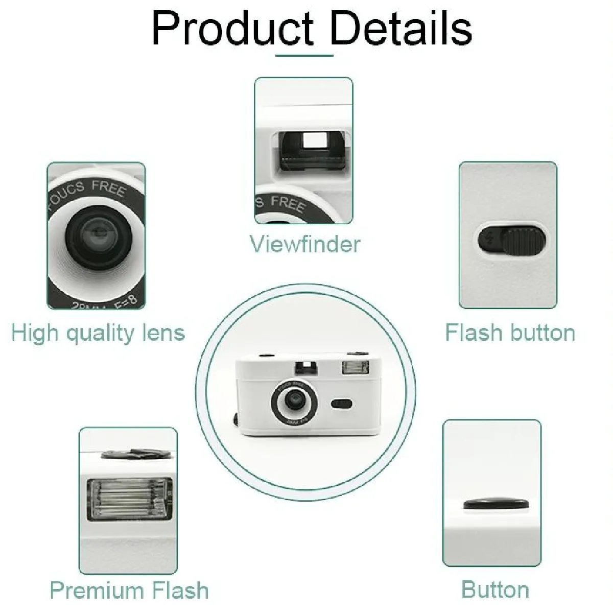 - Film : Compatible avec le film 135/35mm noir et blanc ou couleur (24x36mm)