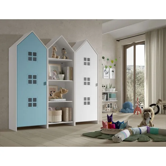 Le volume de rangement s'organise autour de deux portes fonctionnelles et d'un espace ouvert inspiré des cabanes de plage, pratique pour garder les essentiels à portée de main. Les modules de la collection CASAMI introduisent une touche ludique et colorée dans une chambre d'enfant tout en proposant des solutions simples pour trier vêtements, jouets et accessoires. L'ensemble présenté réunit une armoire ouverte CASAMI, une armoire CASAMI BRUGES avec porte Blue Ballet et une armoire avec porte blanche, afin d'optimiser la place sans alourdir la pièce. La finition blanche s'intègre facilement aux décors existants, et le format adapté aide à structurer le coin rangement sans empiéter sur l'aire de jeu.
