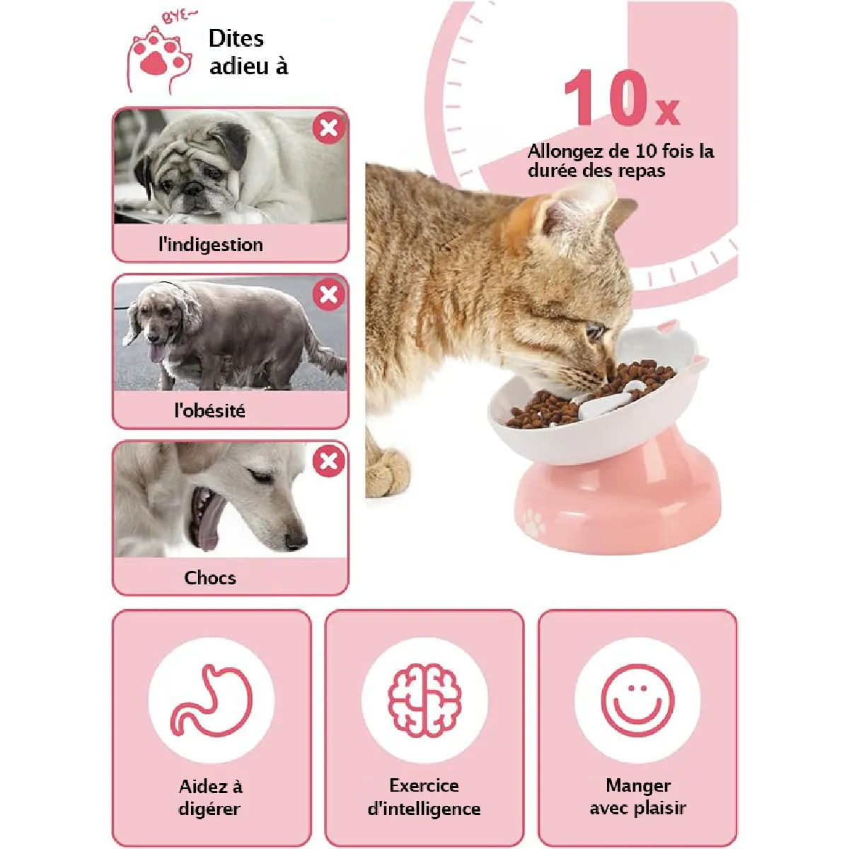 Manger 10 fois plus lentement : empêche efficacement les chats de manger trop rapidement, ce qui peut entraîner des problèmes de santé tels que vomissements, éructations, obésité, etc., et aide les chats à adopter des habitudes alimentaires saines.