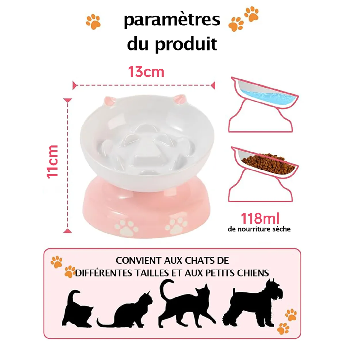 Gamelle surélevée pour chat : permet aux chats de manger plus naturellement et plus confortablement et réduit également la pression sur le cou, le dos et le dos du chat. et le système digestif en mangeant.