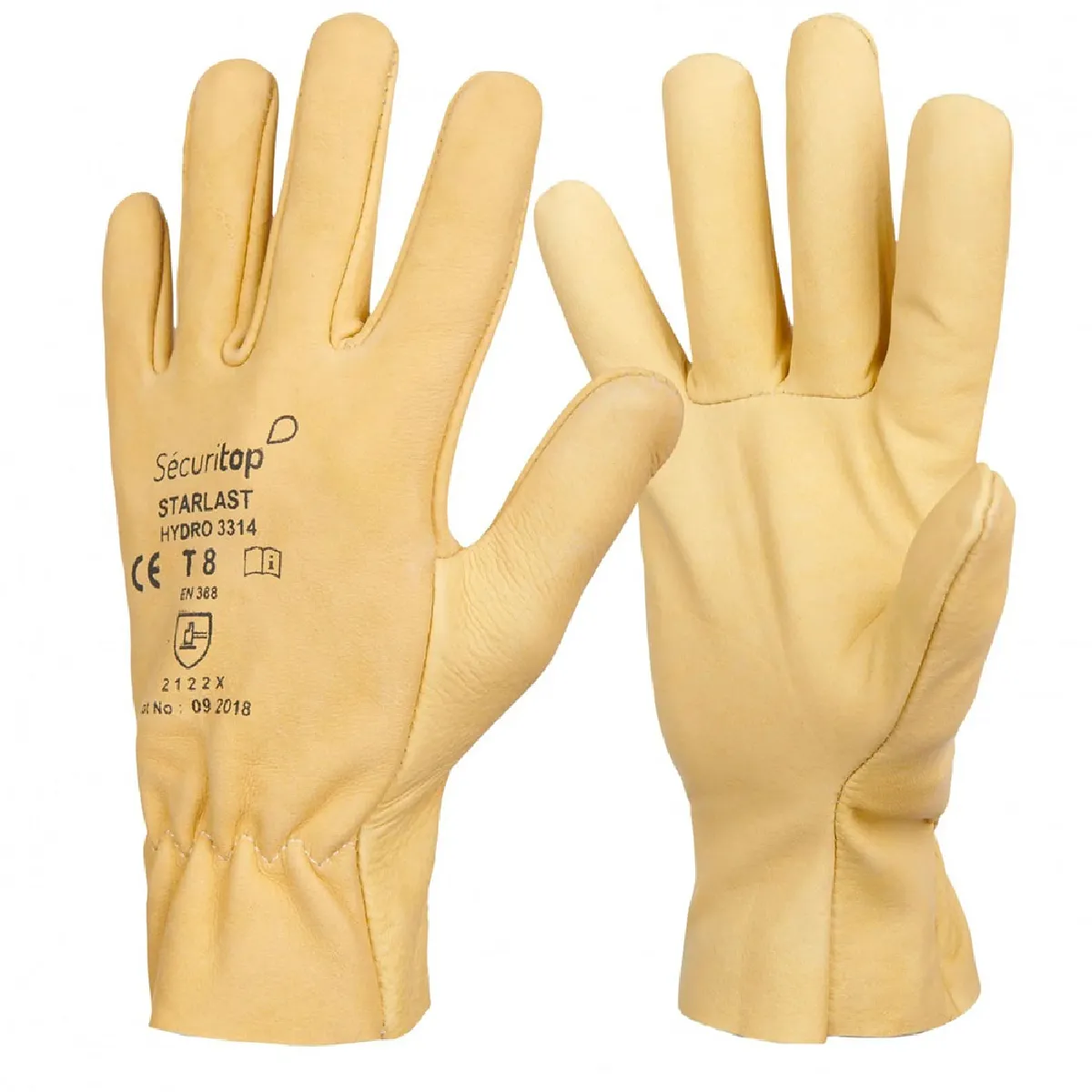 . Marque : Securitop. Taille : 7 à 9 . Matériaux : Cuir hydrofuge, cuir bovin . Norme EN 388-3122. Résistance à l'abrasion : 3/4. Résistance à la coupure : 1/5. Résistance à la déchirure : 2/4. Résistance à la perforation : 2/4. Norme EN 420. Déxtérité 5/5.Fonctions appréciées sur les gants de travail Starlast :