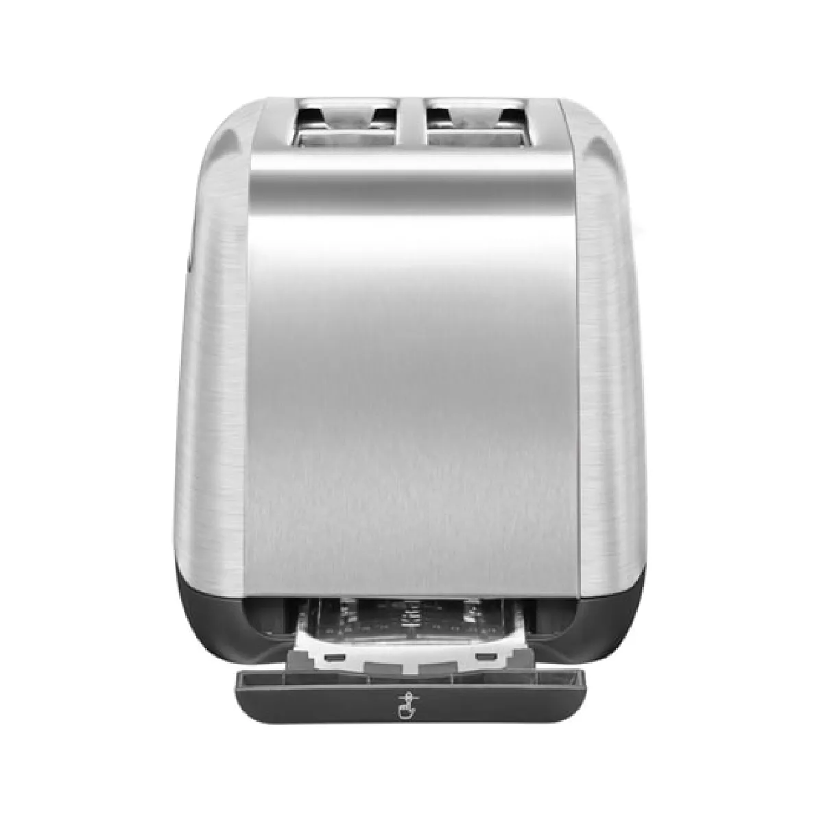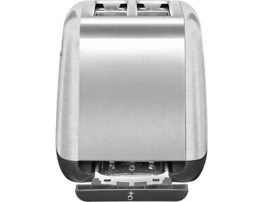 La chauffe est assurée par un fil résistif dimensionné pour 1100 W, garantissant une montée en température rapide et régulière. Les deux fentes accueillent différents formats de tranches pour obtenir le niveau de dorure voulu. Le tiroir réceptacle de miettes amovible aide à garder l'appareil propre, tandis que la structure tout métal accroît la stabilité sur le plan de travail durant l'utilisation.