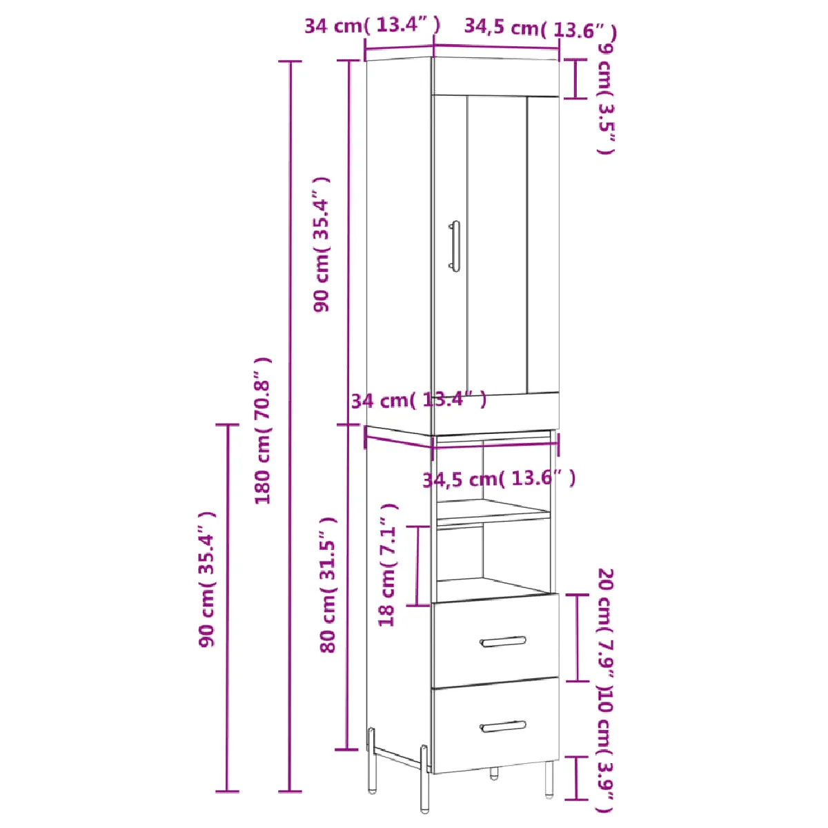 - Dimensions du dessus pour buffet haut : 34,5 x 34 x 90 cm (l x P x H)