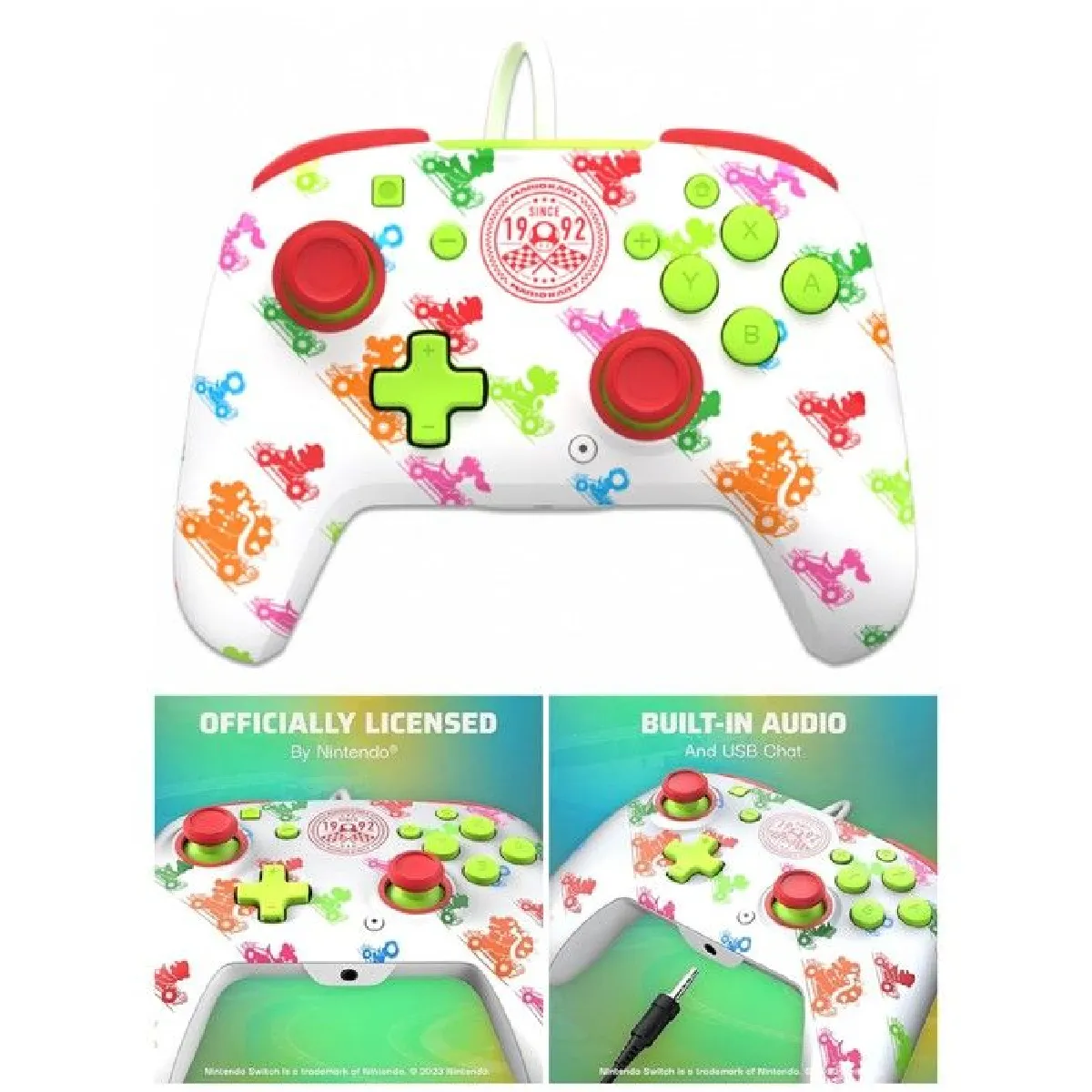 La gestion du câble s'adapte aux usages : 1 m pour le mode portable et rallonge de 2 m pour le jeu sur téléviseur ou sur table, soit 3 m au total. L'arceau réglable répartit la pression et les coussinets circumauraux en tissu procurent un port confortable sur de longues sessions. Compatible avec Switch modèle OLED, Switch et Switch Lite, ce modèle au coloris rouge s'intègre à l'écosystème Mario Kart avec des éléments visuels assortis à la franchise.
