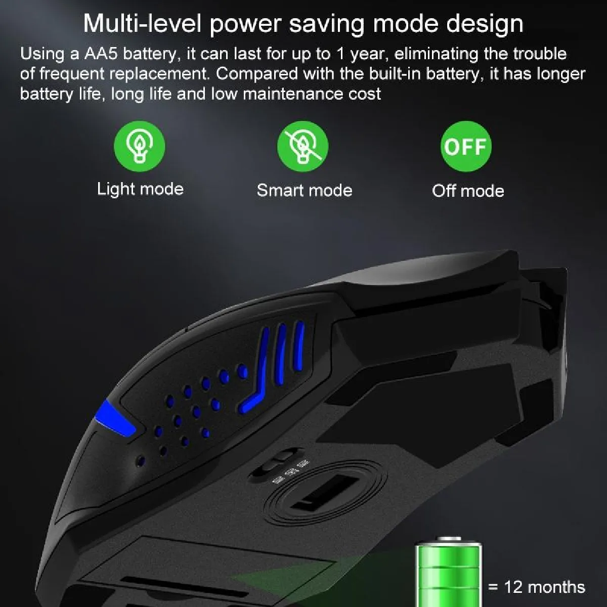 - 5 niveaux de DPI ajustables (800/1200/1600/2000/2400DPI) pour une sensibilité personnalisable.