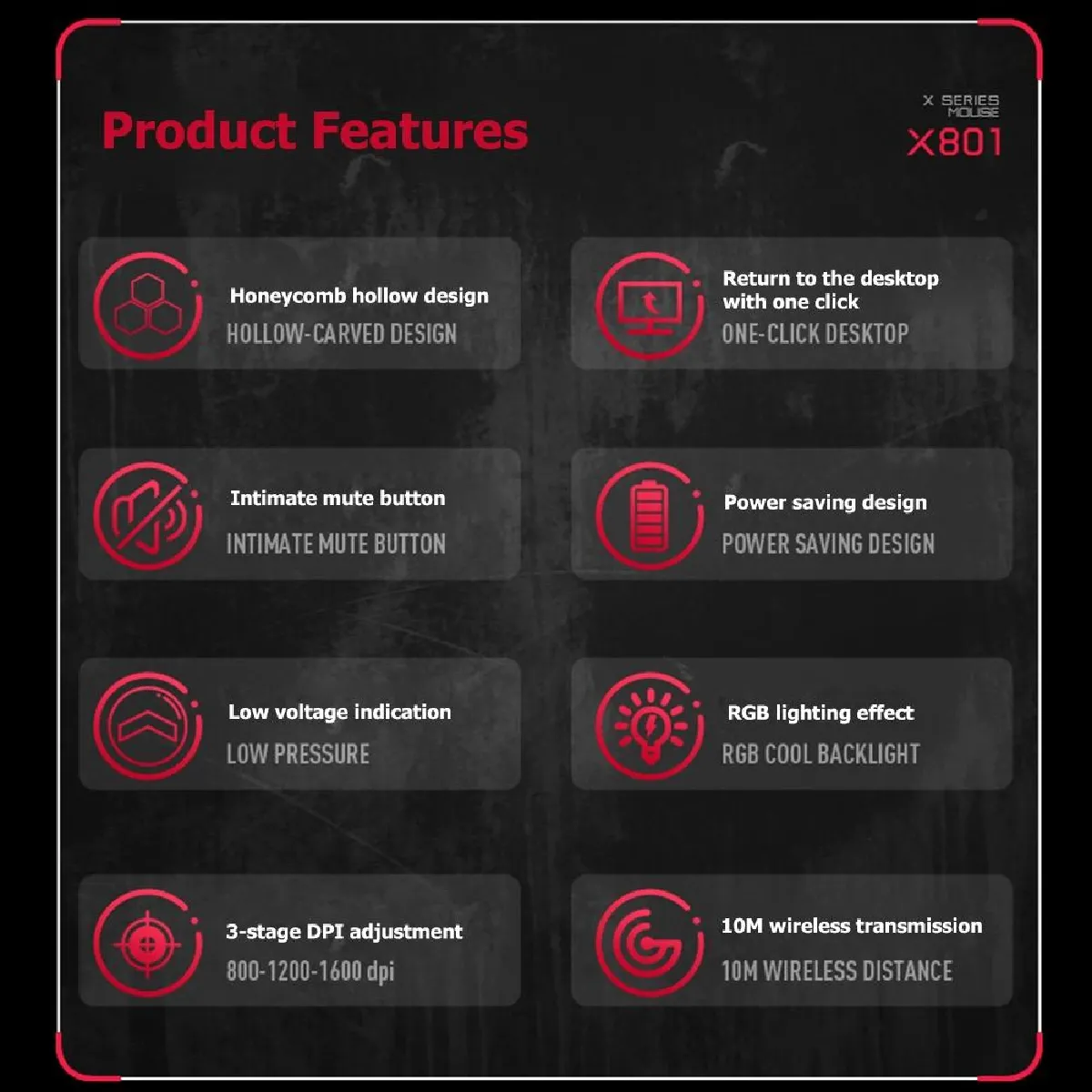 - Sensibilité réglable : 800 / 1200 / 1600 DPI