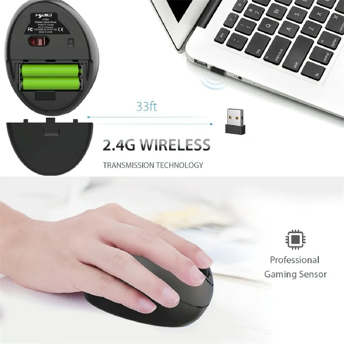- Type : Souris optique sans fil verticale