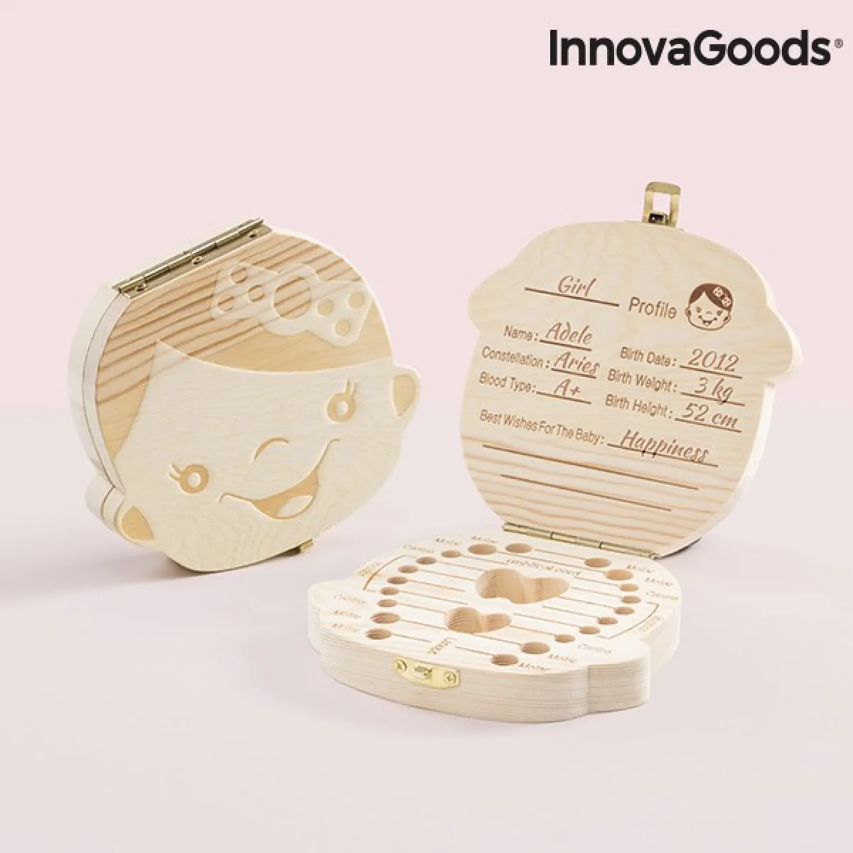 Vous pourrez facilement vous souvenir du moment exact de la naissance et du développement de votre enfant en en conservant les souvenirs dans cette boîte en bois et à fermeture métallique. Vous pourrez ranger à l’intérieur quelques dents de lait, son cordon ombilical et son duvet f tal. Vous pourrez aussi y inscrire toutes les informations lui concernant.