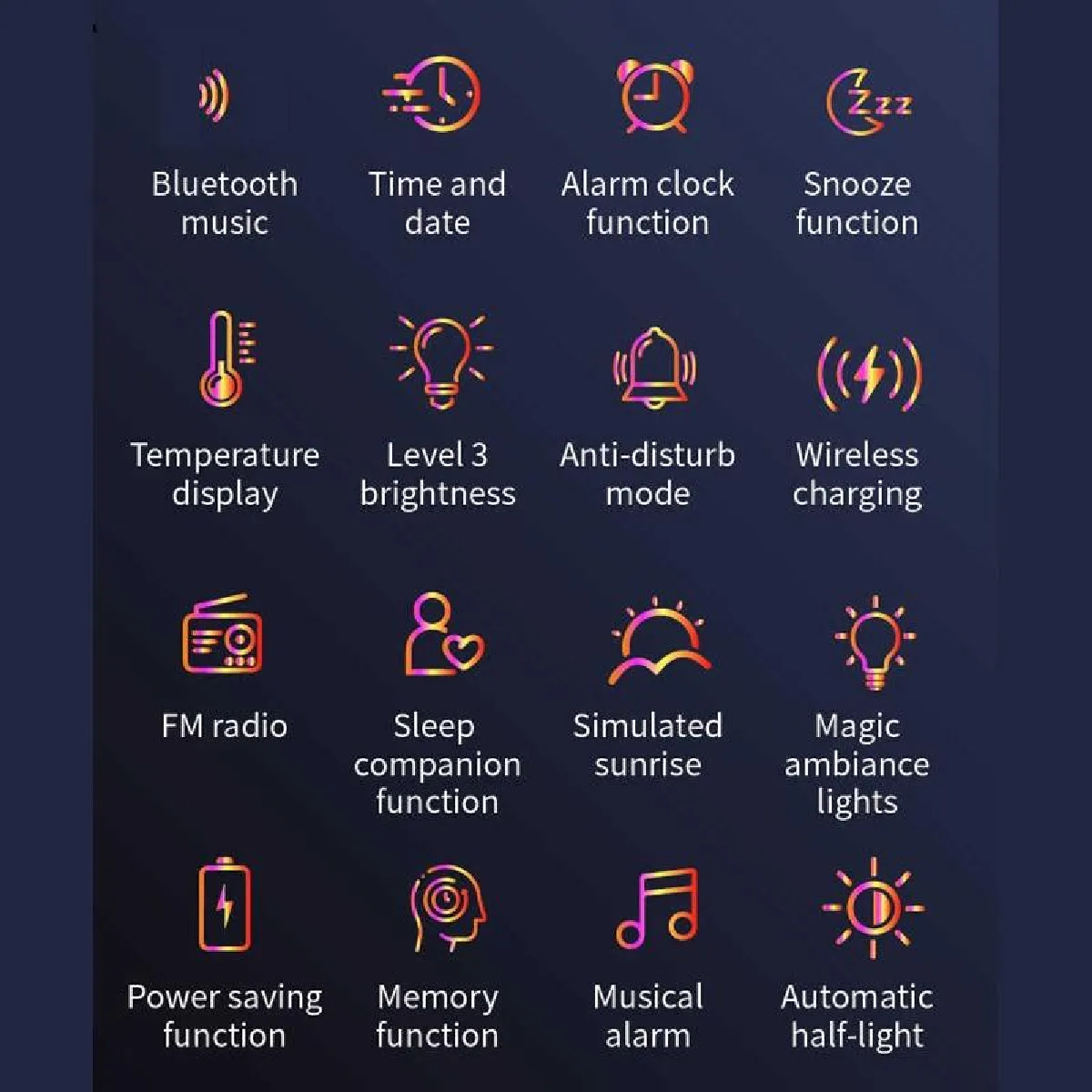 Réveil lumineux Bluetooth multifonction pour table de chevet