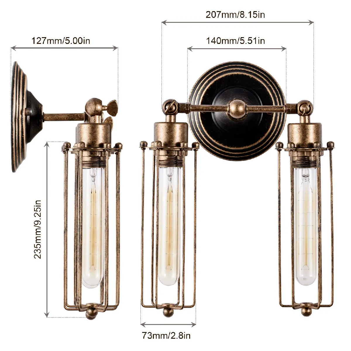 Applique murale Vintage - Métal - Ajustable - Installation facile