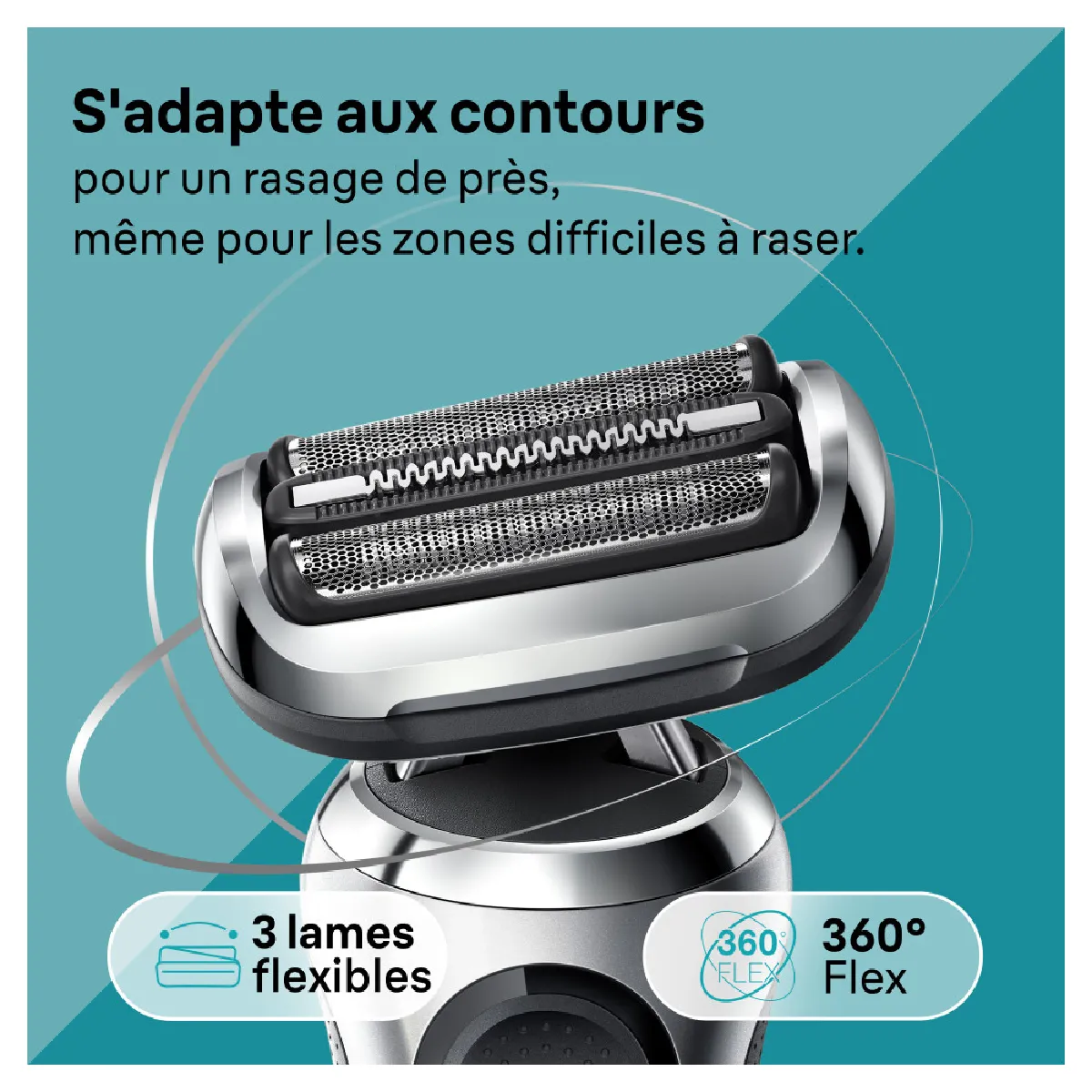 - Tête : 3 lames flexibles avec flexibilité à 360°