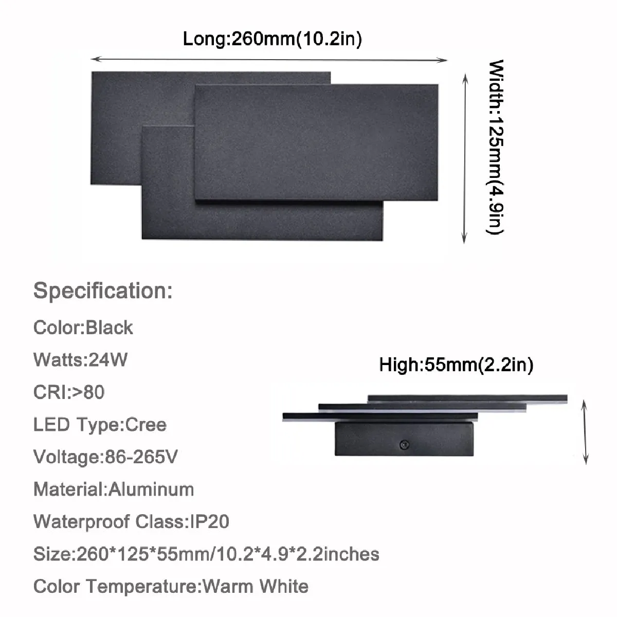Taille du produit : 260x125x55 mm / 10,2x4,9x2,2 pouces (L x L x H)