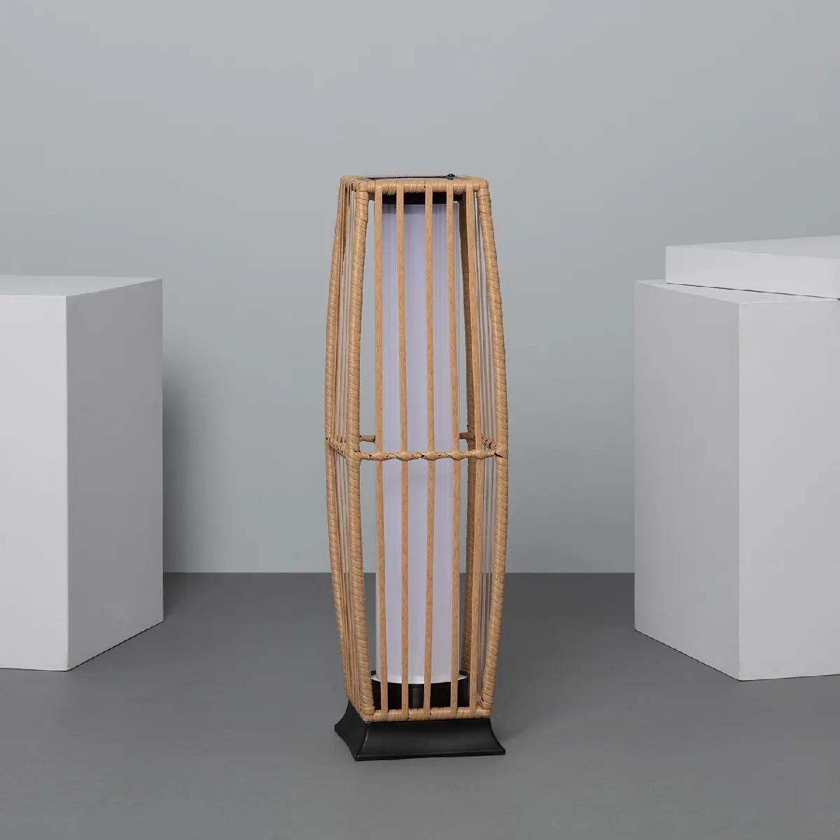 Lampadaire extérieur solaire - Rotin PE - Panneau solaire intégré - Batterie 1200mAh - Autonomie 8-10 h